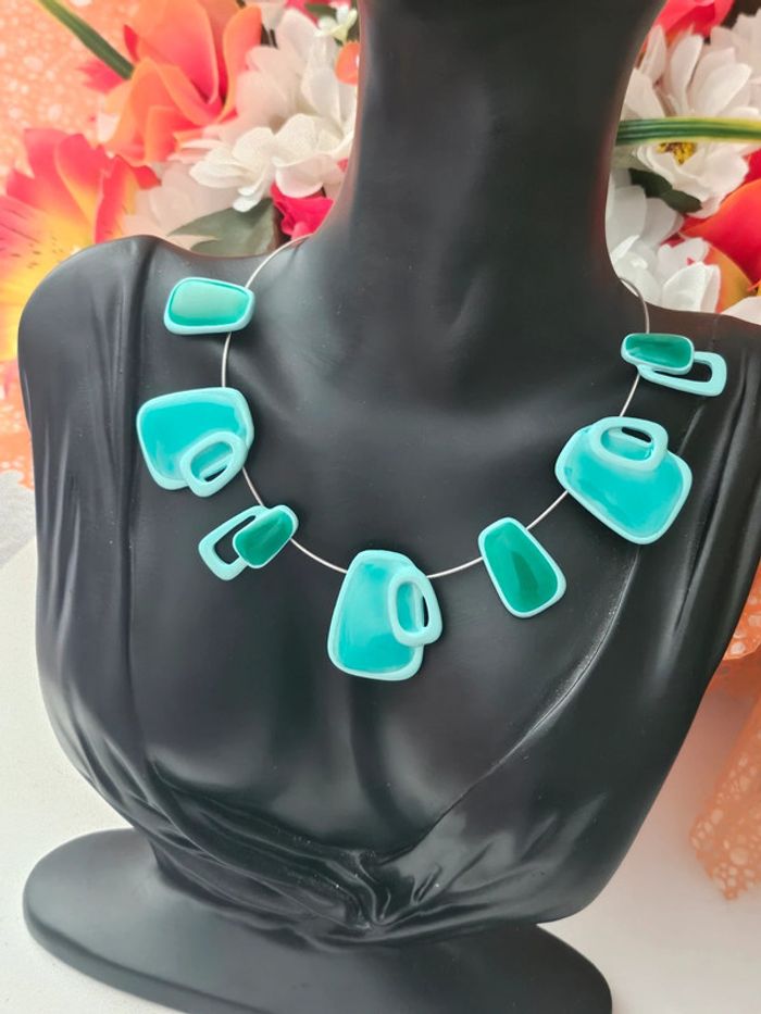 Collier avec ses formes bleues/vertes en acier inoxydable - photo numéro 1