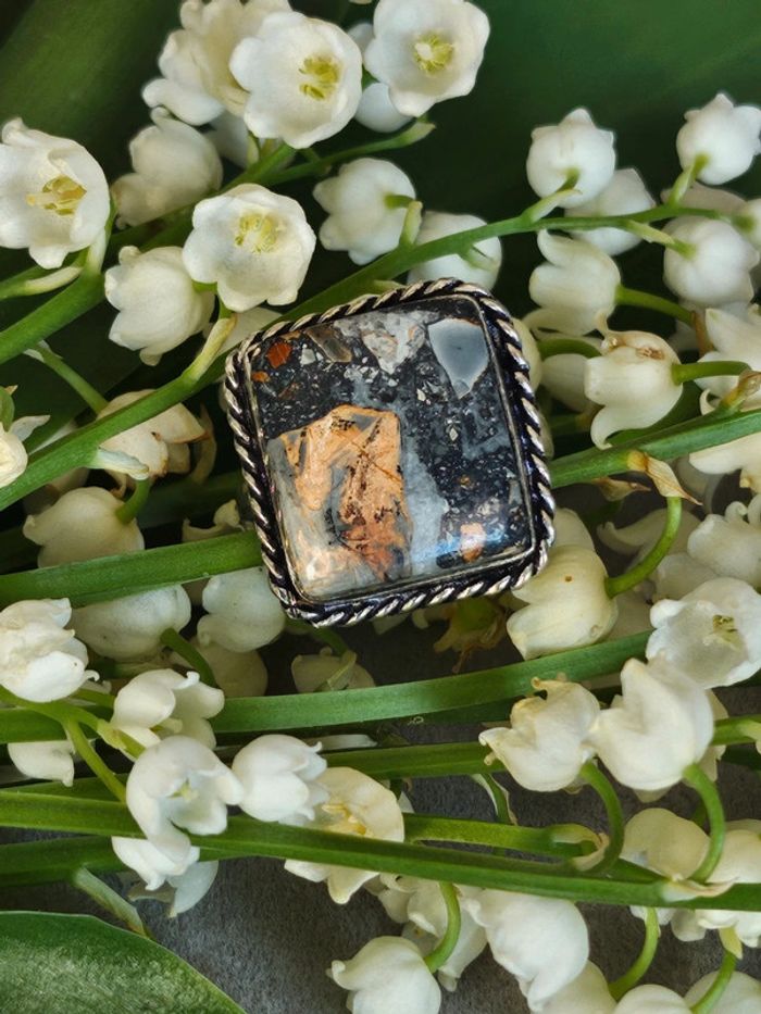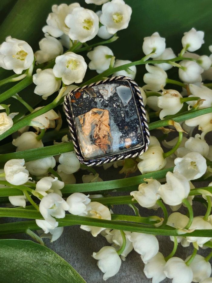 Bague en argent sterling 925 avec pierre jaspe maligano - photo numéro 1