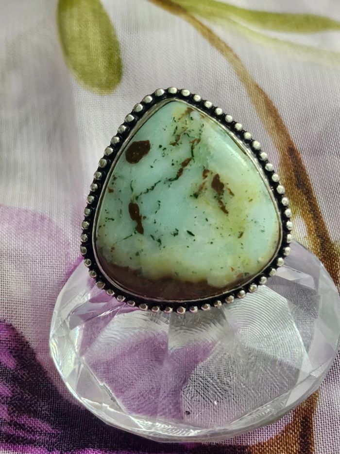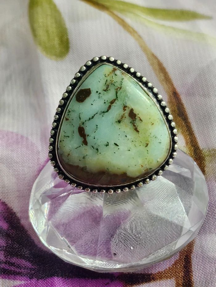 Bague en argent sterling 925 avec pierre chrysoprase - photo numéro 1