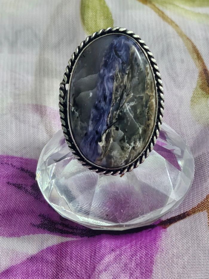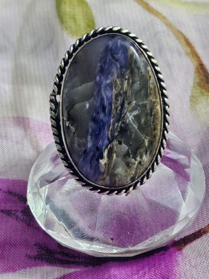 Bague en argent sterling 925 avec sa pierre charoite - photo numéro 1