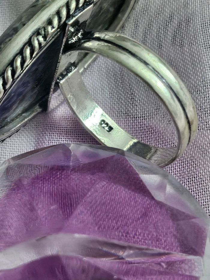 Bague en argent sterling 925 avec sa pierre charoite Neuve sans étiquette,jamais portée De marque argent Sterling 925 Piece unique en pierre naturelle SERTIE Poinçonnée 925 Taille 61 (26/04/2025*415)