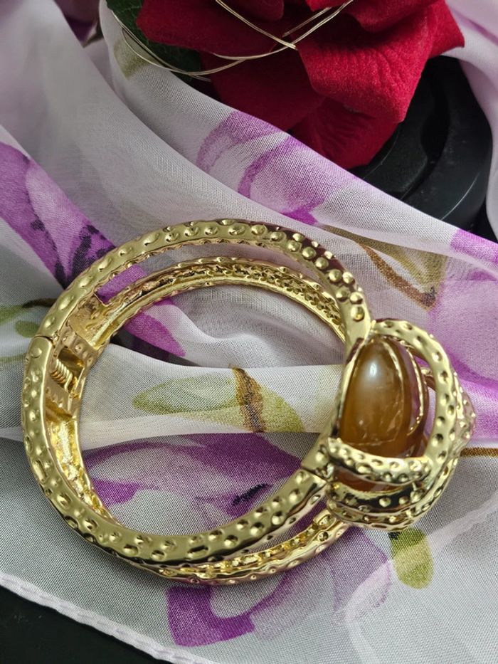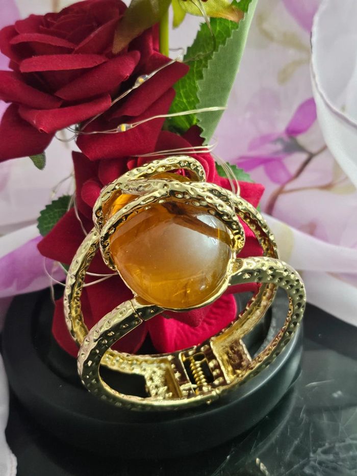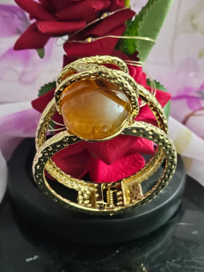 Gros bracelet manchette avec pierre d ambre baltique Neuf sans étiquette, jamais porté De marque Aihhq Ne noircit pas au fil du temps Ne rouille pas Bonne résistance au passage sous l eau Ajustable ( s adapte à tous type de poignets ) (28/04/2025*453)