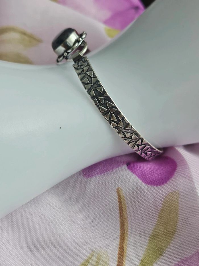 Bracelet ajustable texturé en argent sterling 925 avec pierre sodalite - photo numéro 7