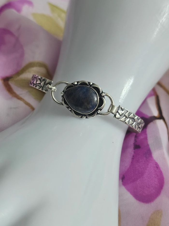 Bracelet ajustable texturé en argent sterling 925 avec pierre sodalite - photo numéro 1