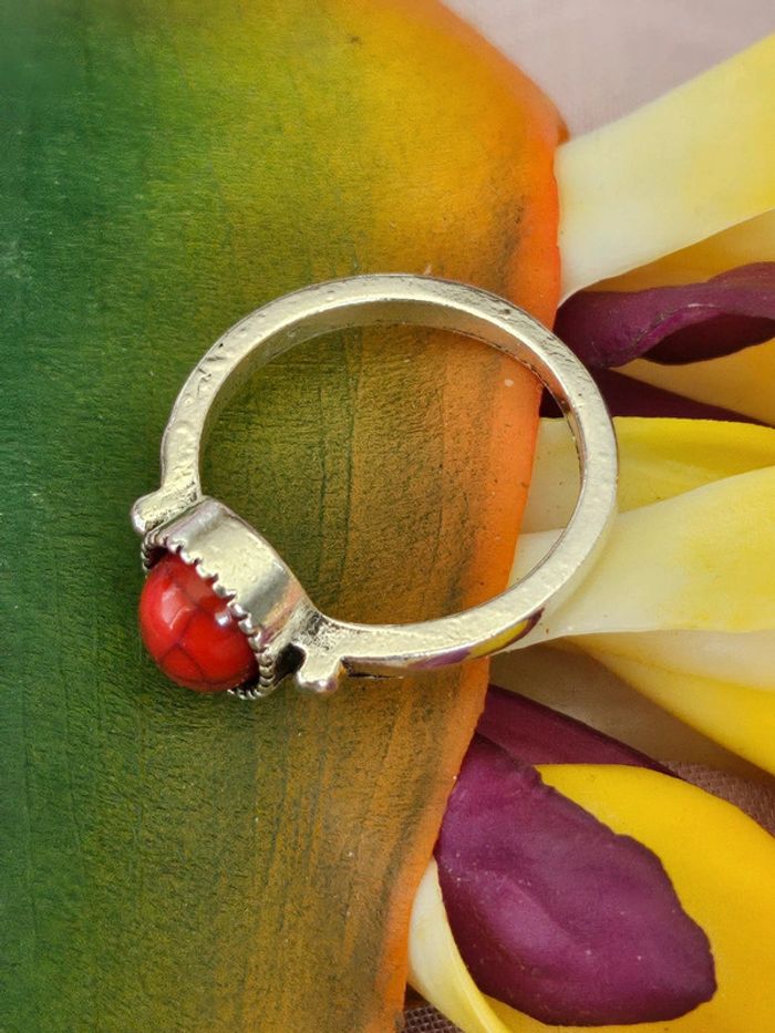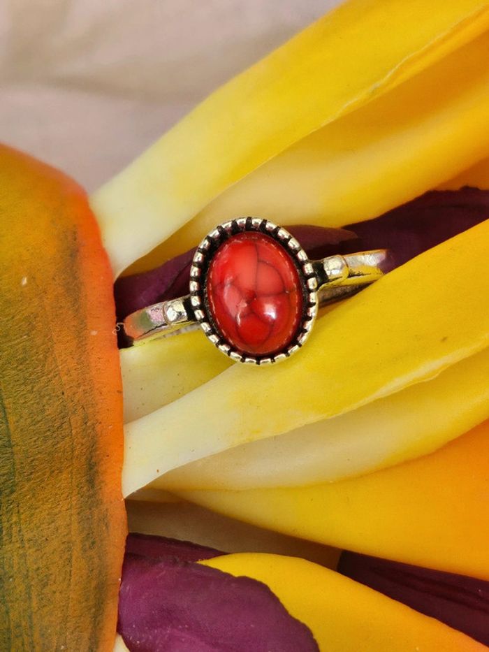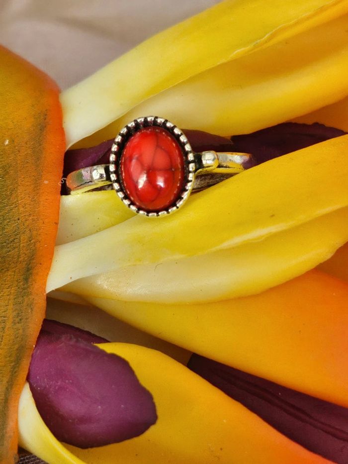 Bague avec sa pierre turquoise rouge mélangée modèle 4
