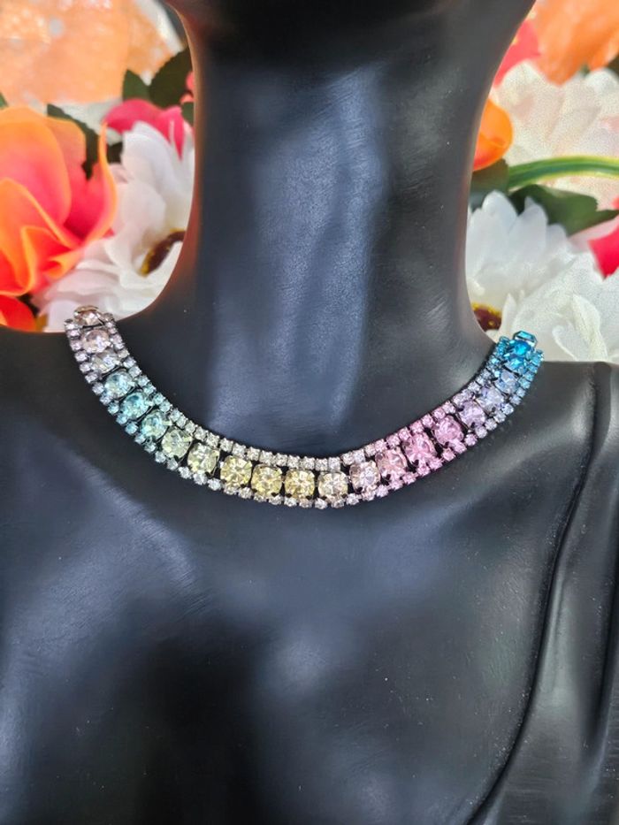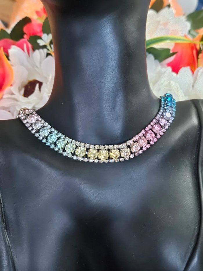 Collier avec ses pierres topaz multicolore Neuf sans étiquette, jamais porté De marque Aihhq En acier inoxydable hypoallergenique haute qualité Ne noircit pas au fil du temps Bonne résistance au passage sous l eau Collier réglable (23/04/2025*349)