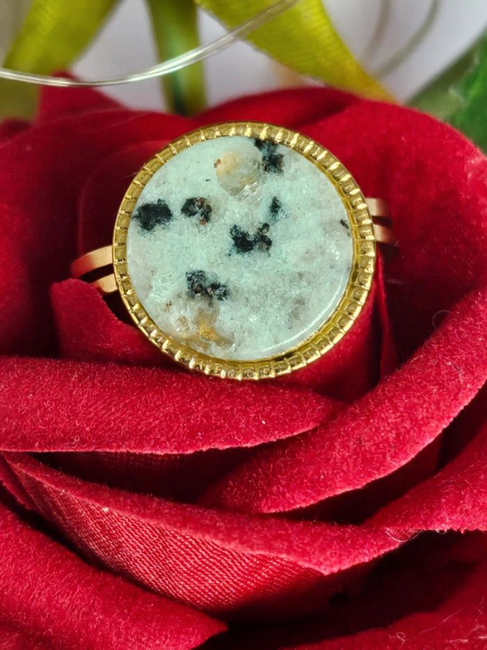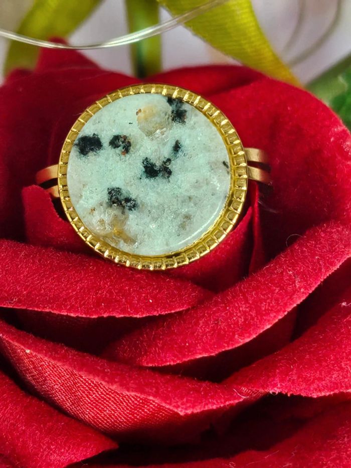 Bague avec pierre jaspe kiwi Neuve sans étiquette, jamais portée De marque Aihhq En acier inoxydable hypoallergenique haute qualité Ne noircit pas au fil du temps Ne rouille pas Bonne résistance au passage sous l eau Taille: Ajustable (25/04/2025*393)