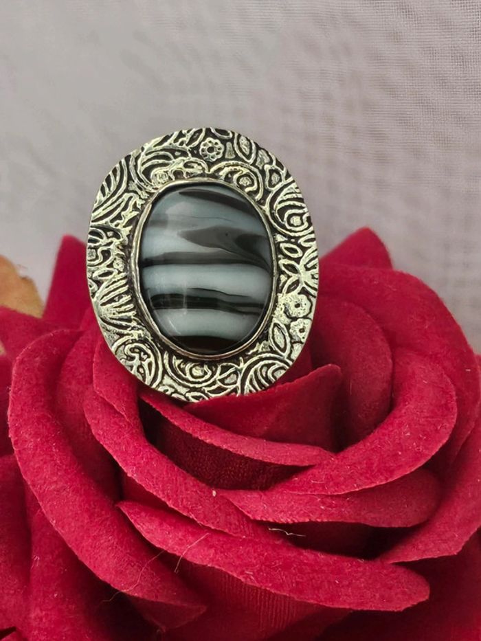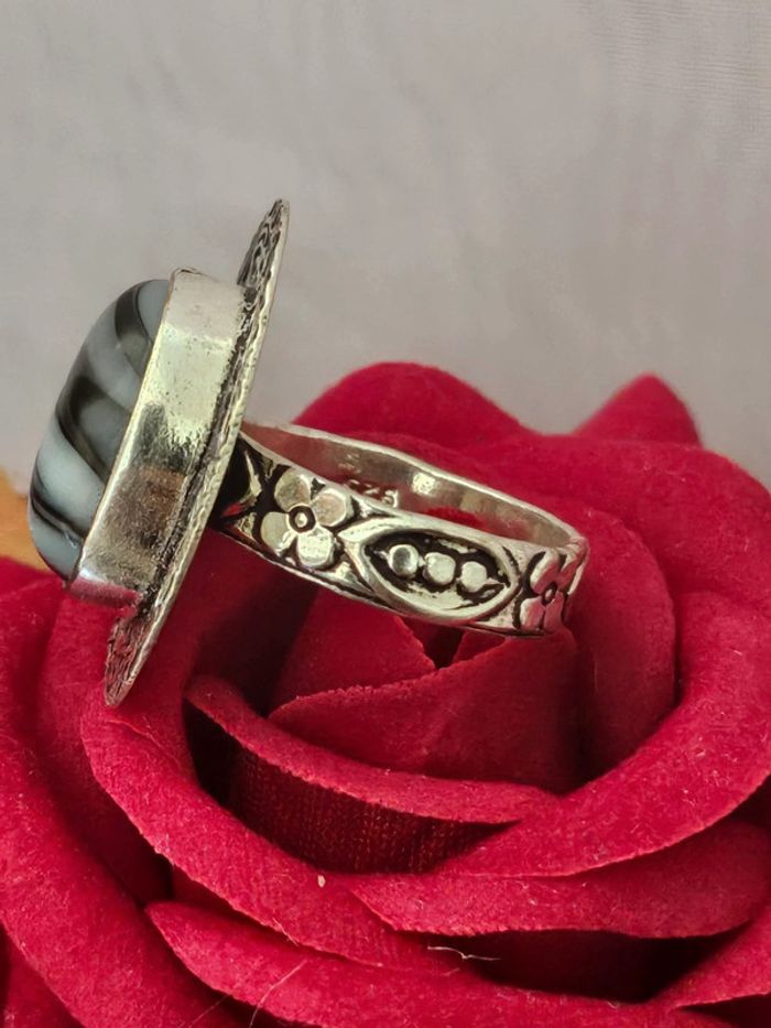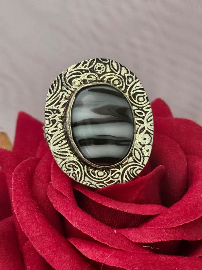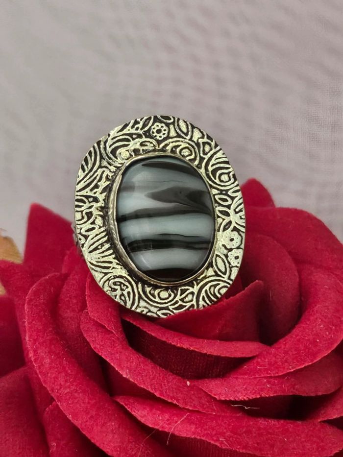 Bague avec sa plaque texturee en argent sterling 925 avec sa pierre agate Botswana - photo numéro 1