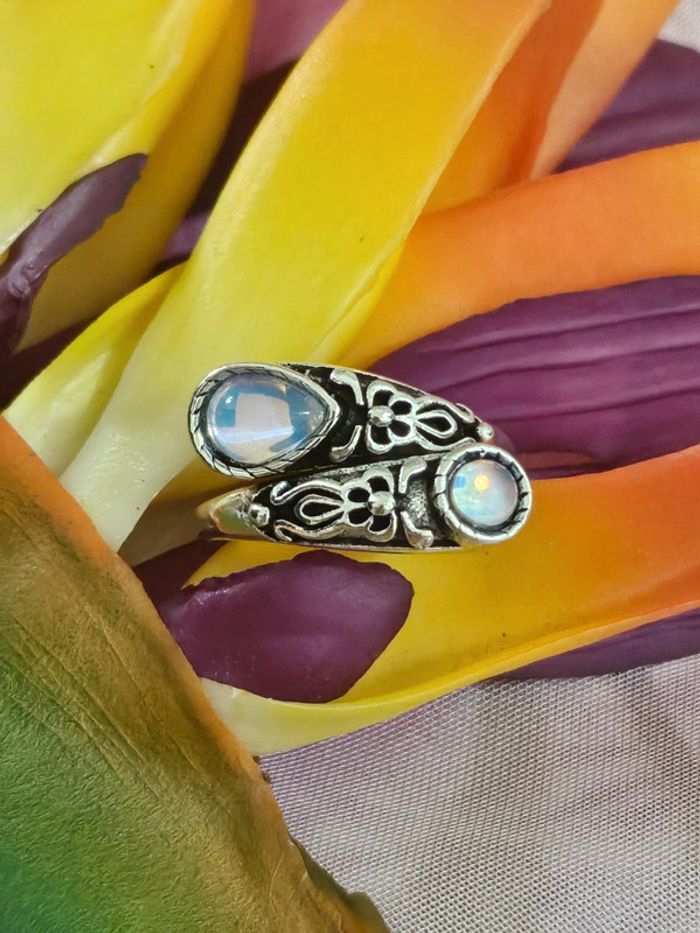 Bague ajustable en argent sterling 925 avec ses pierres opalite - photo numéro 2