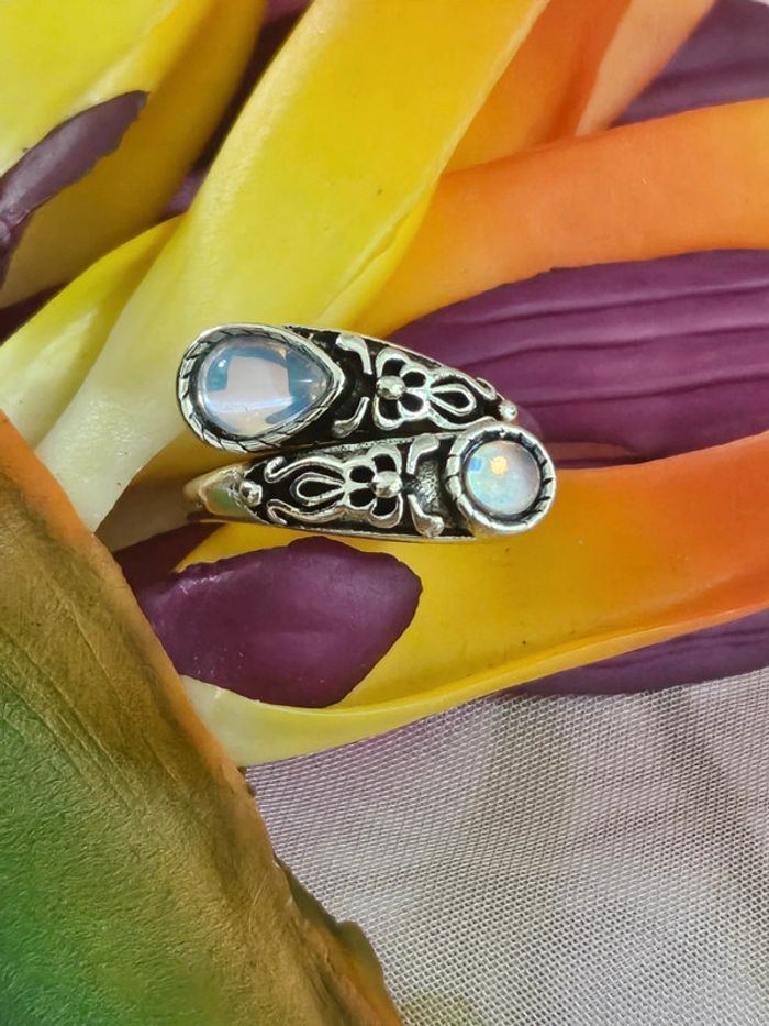 Bague ajustable en argent sterling 925 avec ses pierres opalite - photo numéro 1