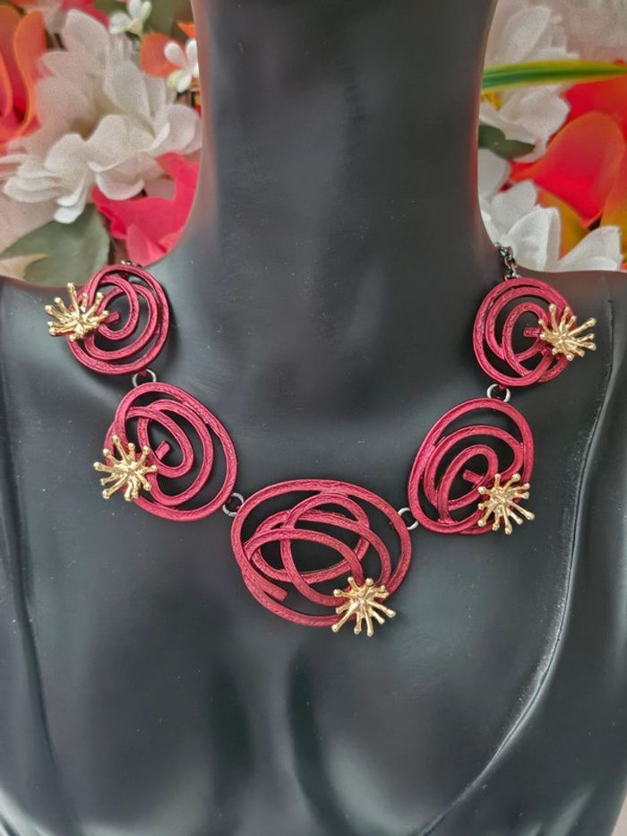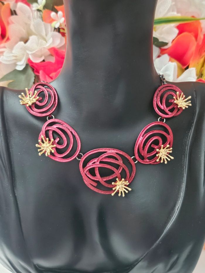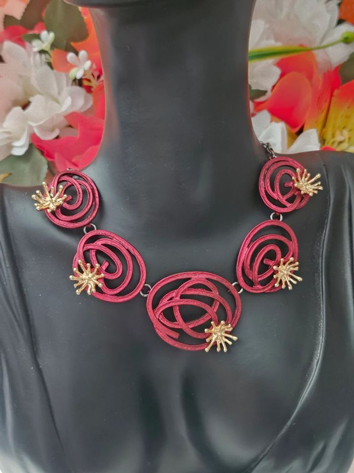 Collier spirales bordeaux/dorés Neuf sans étiquette, jamais porté De marque Ikita En acier inoxydable hypoallergenique haute qualité Ne noircit pas au fil du temps Ne rouille pas Bonne résistance au passage sous l eau Collier réglable (30/04/2025*474)