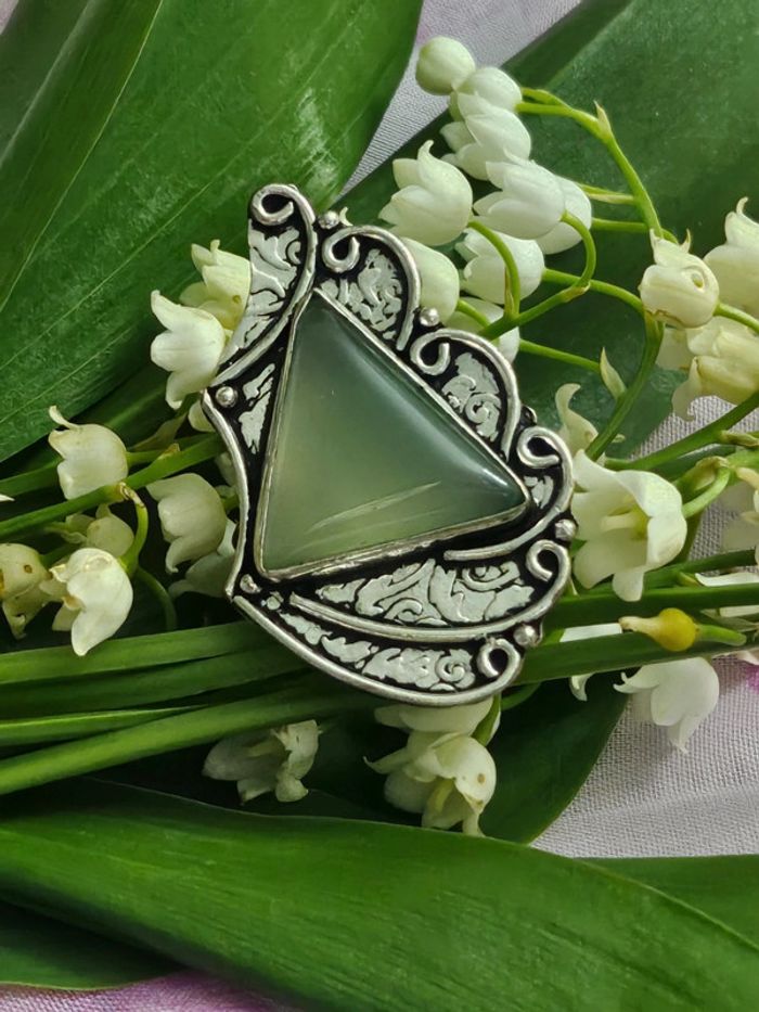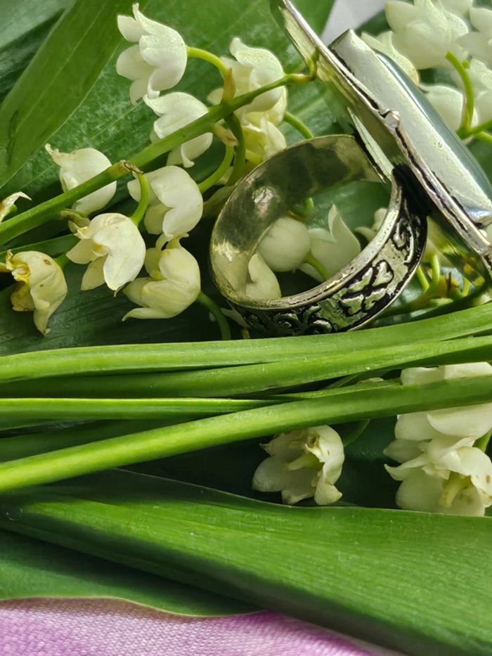 Bague texturee en argent sterling 925 avec pierre onyx vert Neuve sans étiquette, jamais portée De marque argent Sterling 925 Pièce unique en pierre naturelle SERTIE Poinçonnée 925 Taille: 59 Pour la taille bien se fier à ce qui est écrit dans le commentaire par mes soins et non dans le texte pré-rempli car nous pouvons y ajouter que des tailles standard. (29/04/2025*466)