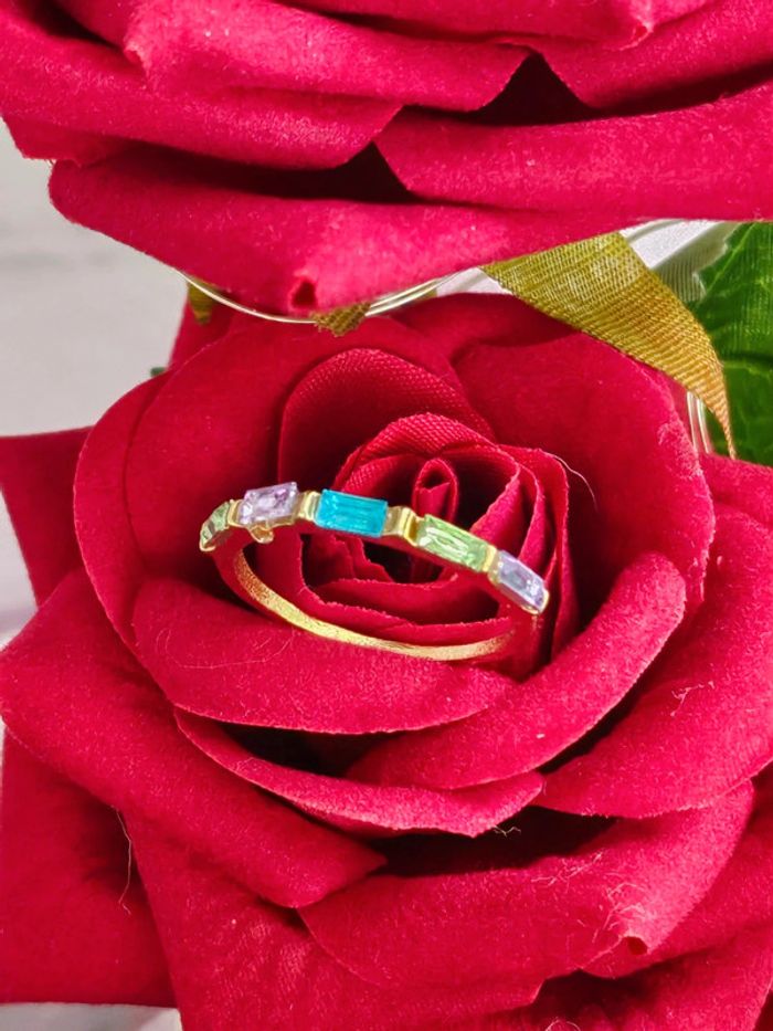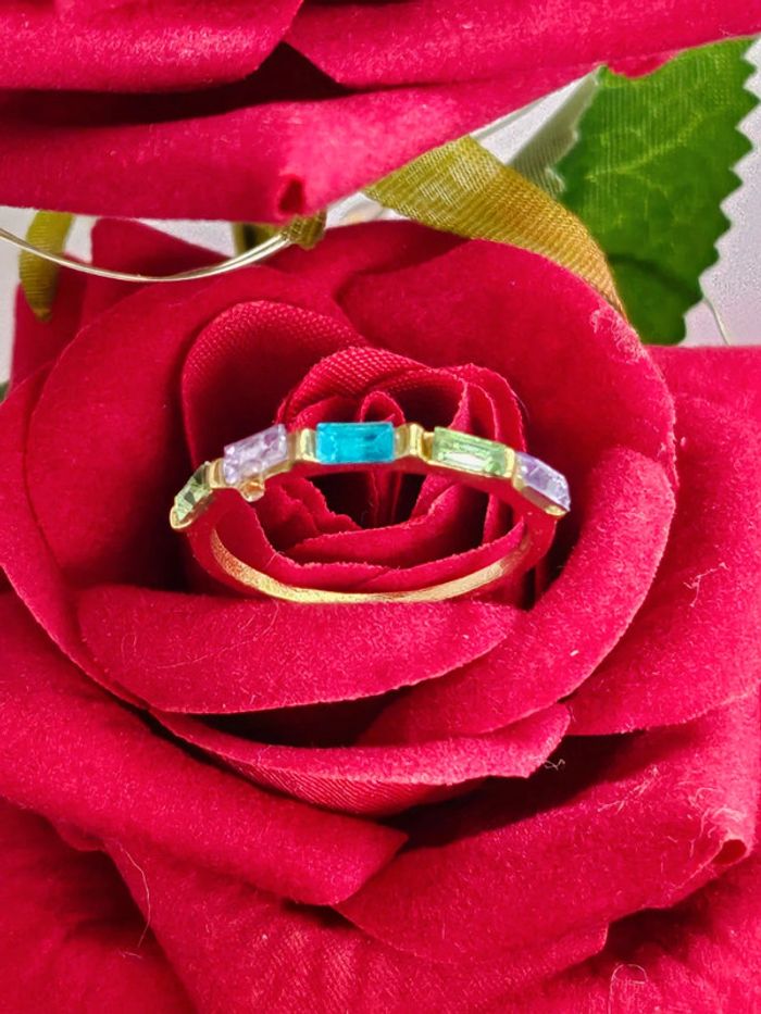 Bague fine avec pierres topaz en acier inoxydable - photo numéro 2