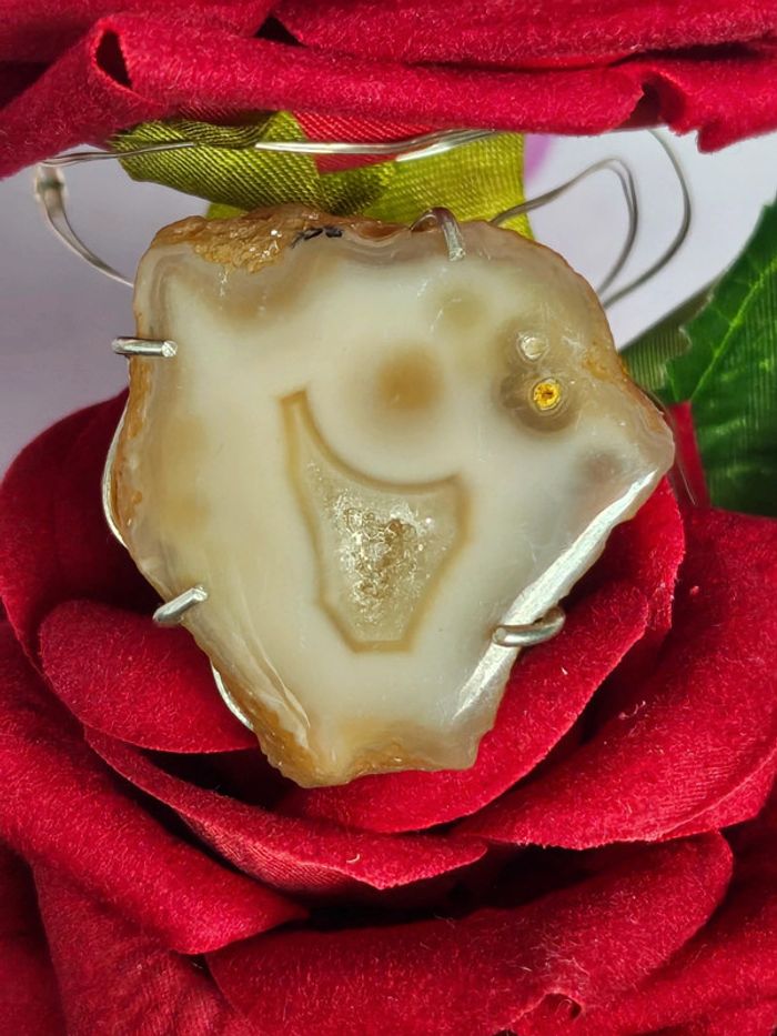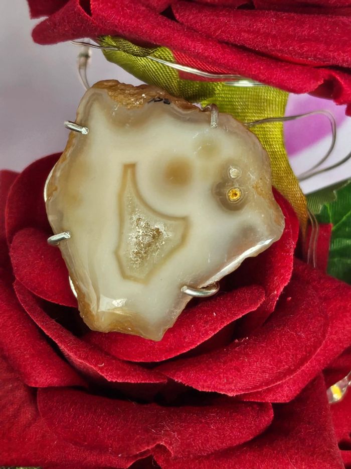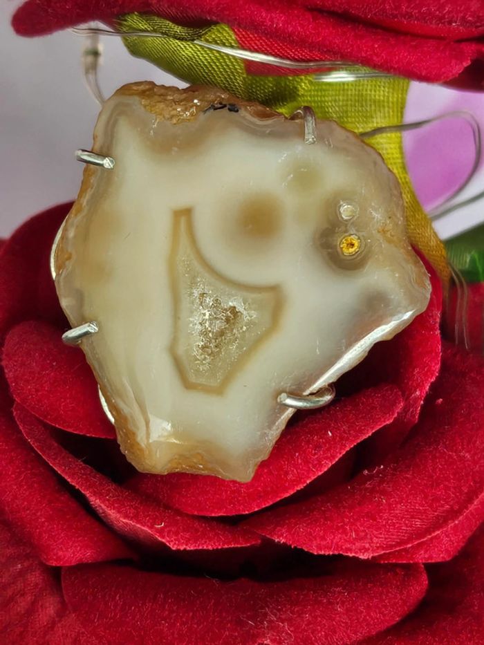 Bague 4 griffes en argent sterling 925 avec pierre agate geode Neuve sans étiquette, jamais portée Piece unique en pierre naturelle SERTIE Estampillée 925 Taille 57 (25/04/2025*395)
