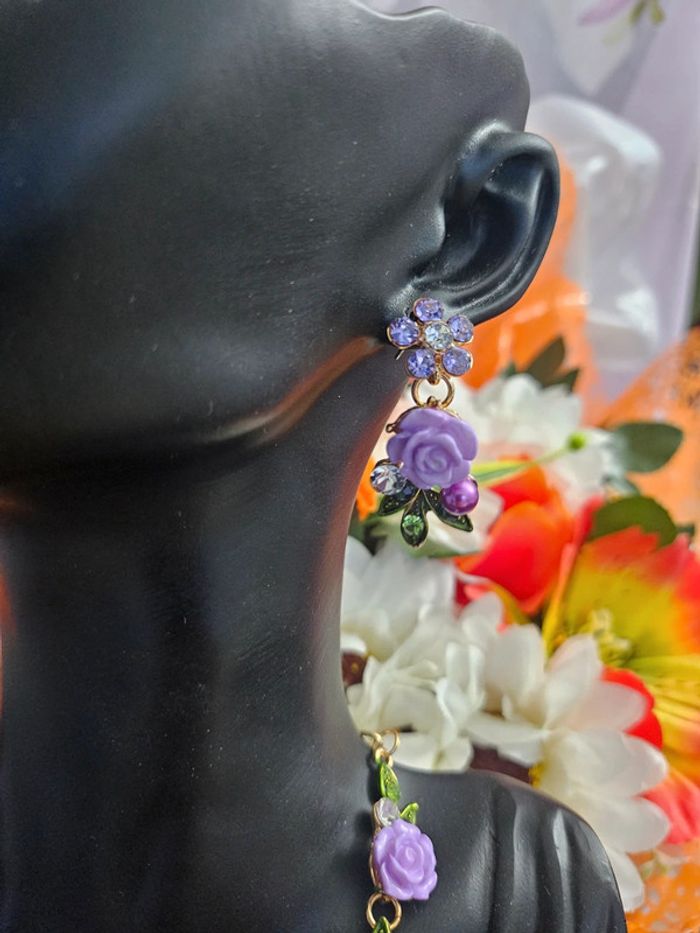 Parure collier et boucles d oreilles avec petites fleurs, et ses pierres topaz en acier inoxydable - photo numéro 3