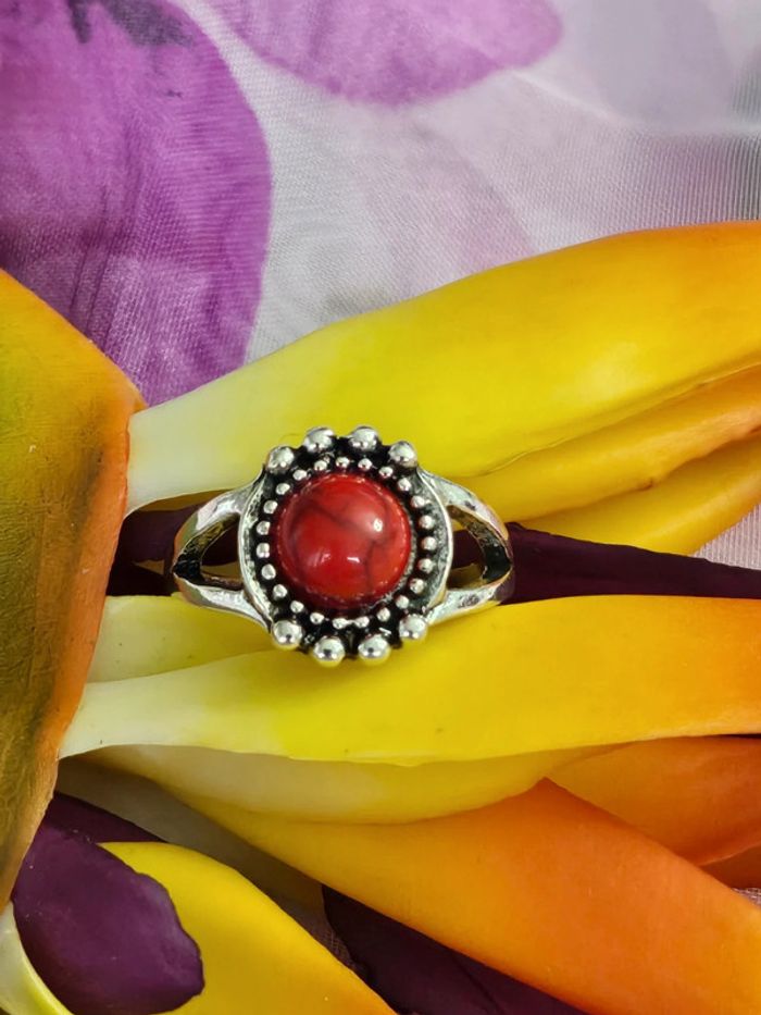 Bague avec pierre turquoise rouge mélangée en acier inoxydable - photo numéro 1