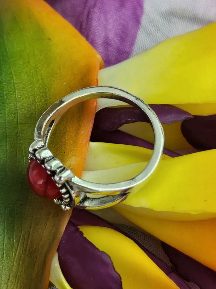 Bague avec pierre turquoise rouge mélangée en acier inoxydable - photo numéro 4