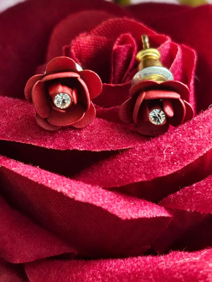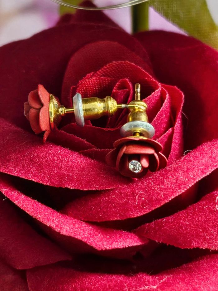 Boucles d oreilles pitons en forme de roses en acier inoxydable - photo numéro 4