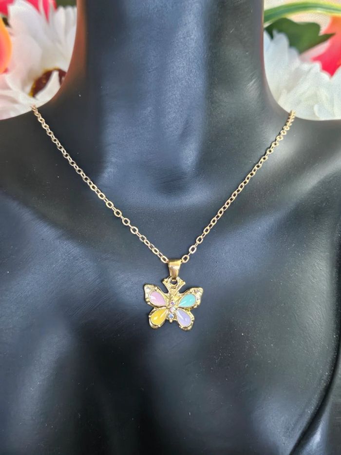 Collier avec son papillon Neuf sans étiquette, jamais porté De marque Aihhq En acier inoxydable hypoallergenique haute qualité Ne noircit pas au fil du temps Bonne résistance au passage sous l eau (23/04/2025*348)