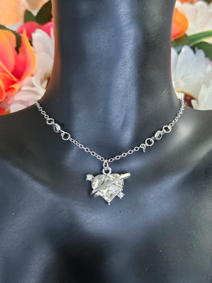 Collier avec son coeur en pierre topaz transparente Neuf sans étiquette, jamais porté De marque Aihhq En acier inoxydable hypoallergenique haute qualité Ne noircit pas au fil du temps Bonne résistance au passage sous l Collier réglable (23/04/2025*346)