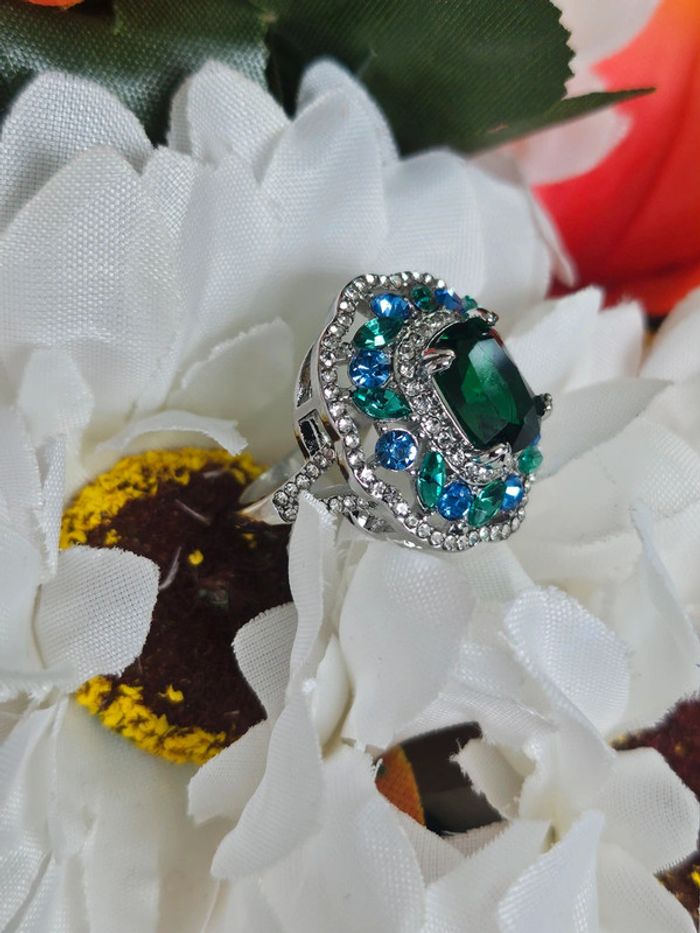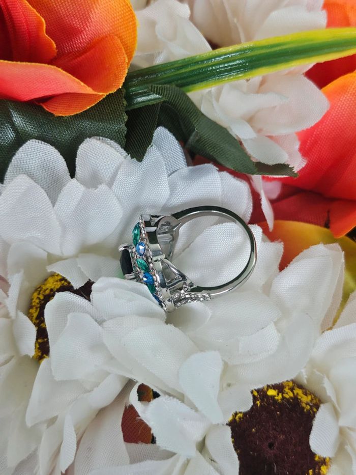 Je vous propose cette bague avec zirconium, pierres topaz verte et bleue. Neuve sans étiquette, non utilisée. En acier inoxydable hypoallergenique ( garantie contre les allergies). Résistante a l eau. Taille 55 (13/04/2025*107)
