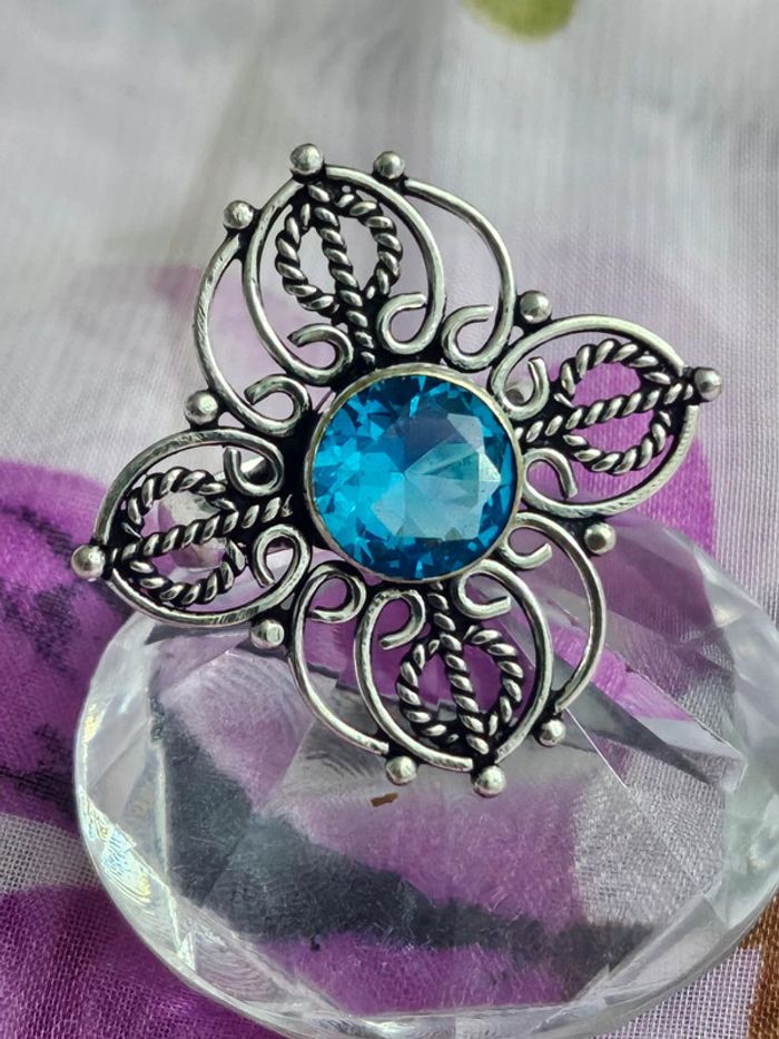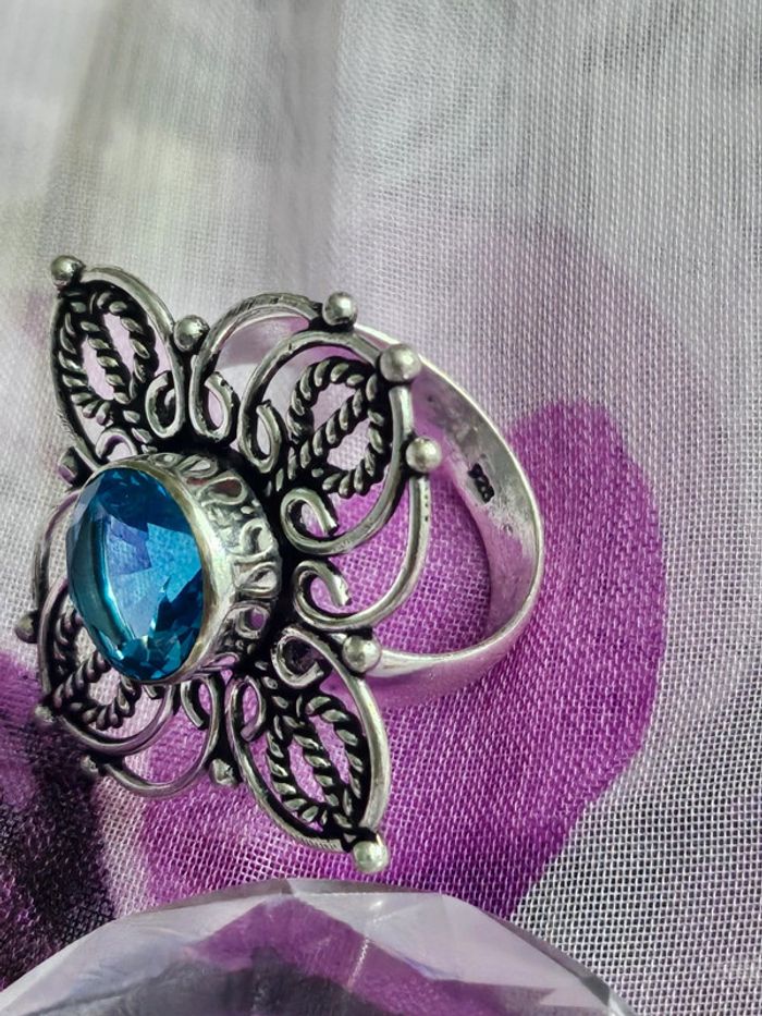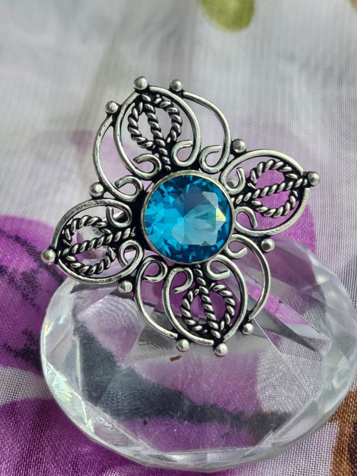 Bague texturée en argent sterling 925 avec pierre topaz bleue - photo numéro 1