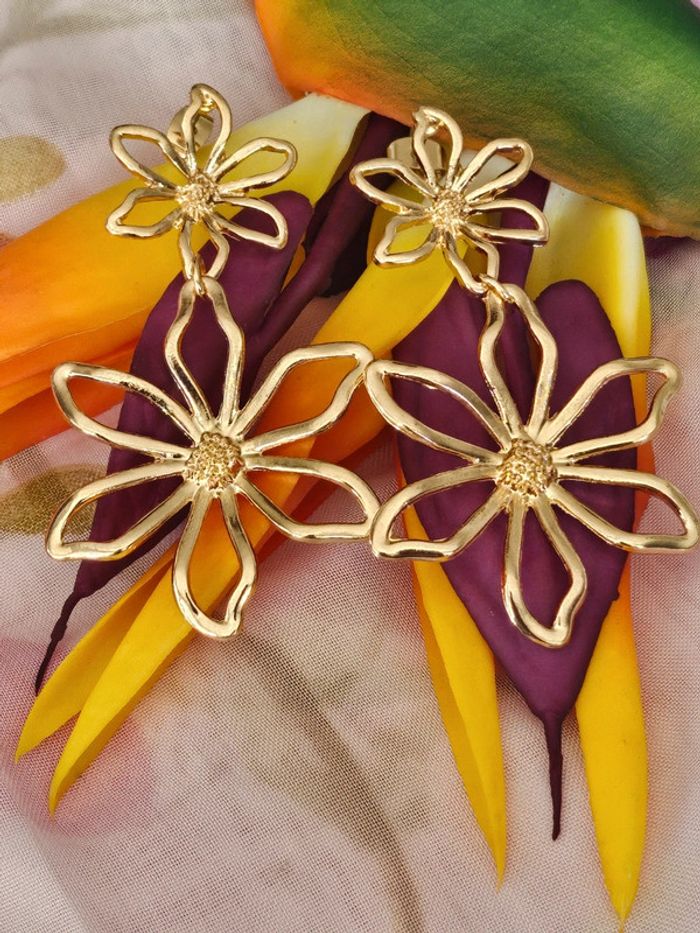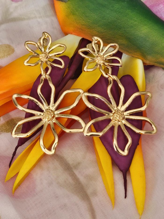 Boucles d oreilles pendantes doubles fleurs en acier inoxydable - photo numéro 1
