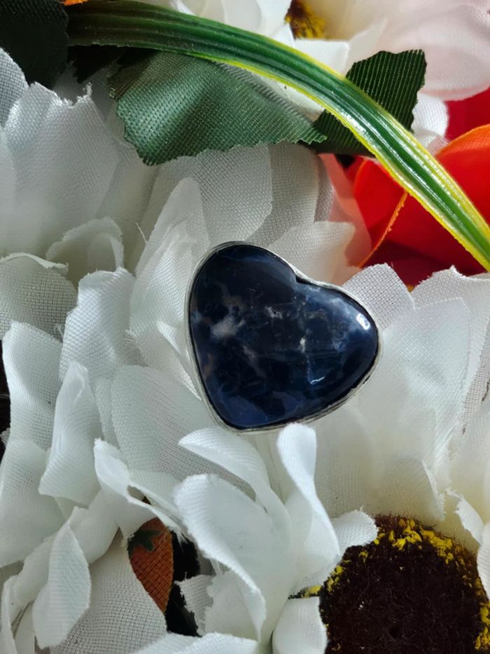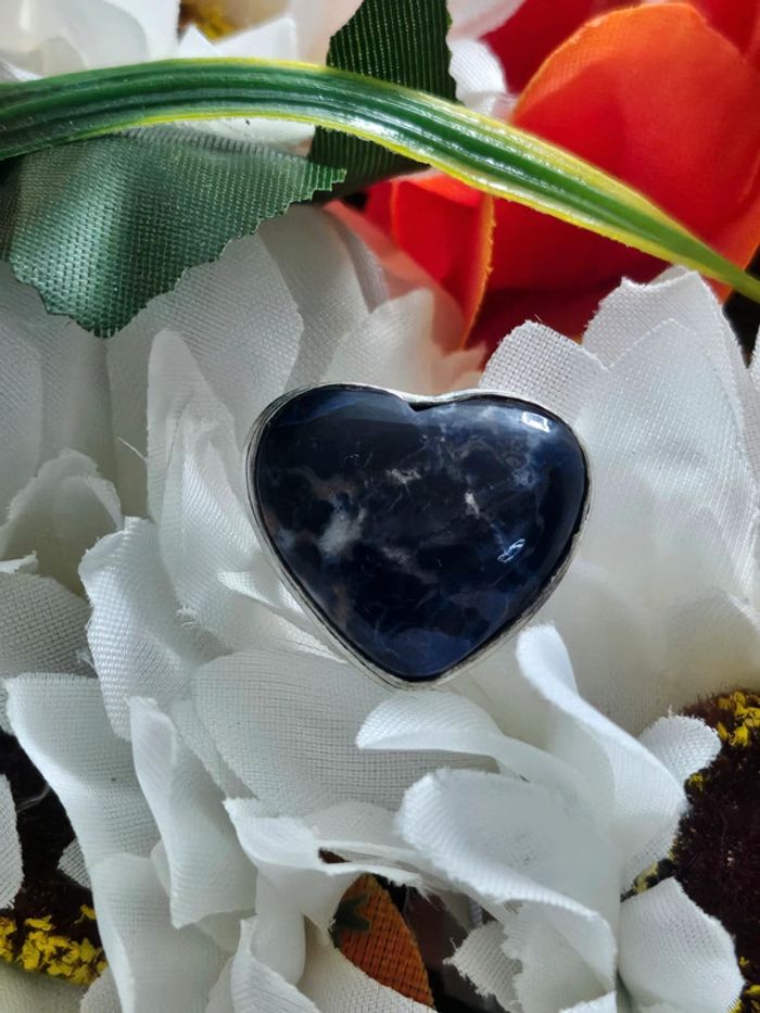 Bague coeur en argent Sterling 925 avec pierre sodalite - photo numéro 1