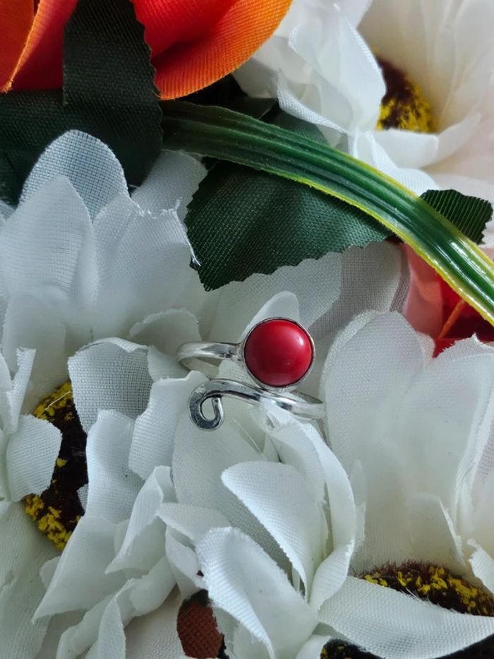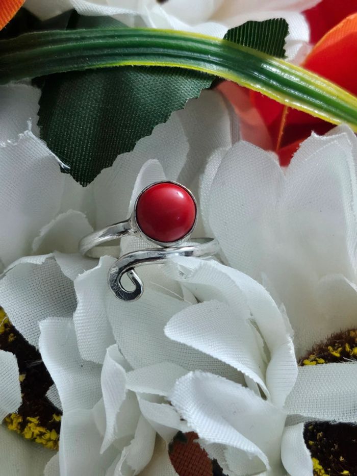 Bague en argent sterling 925 avec pierre corail rouge - photo numéro 1
