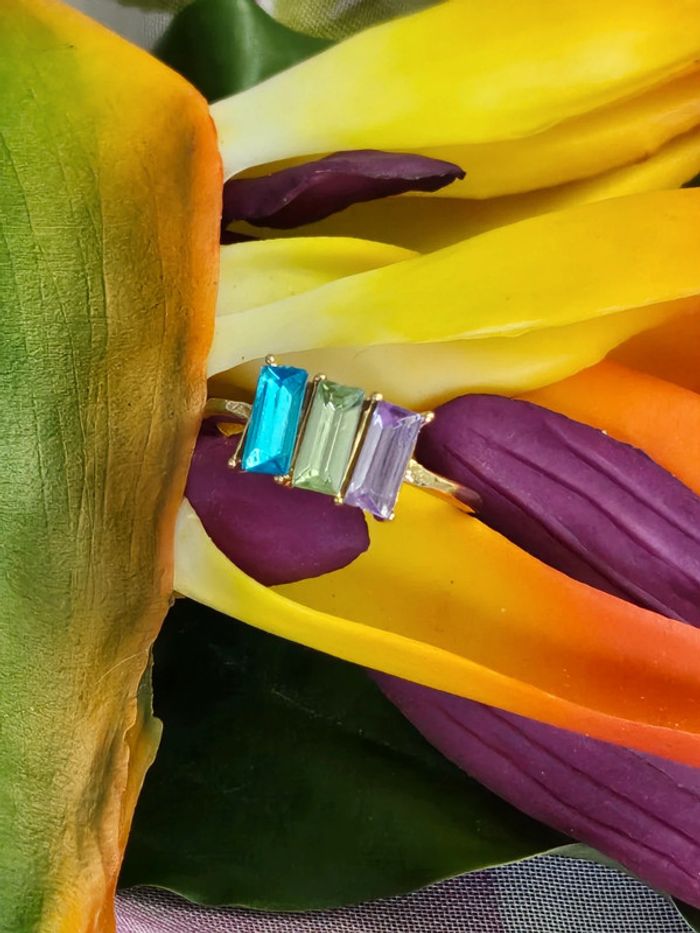 Bague avec ses 3 pierres topaz rectangles en acier inoxydable - photo numéro 1