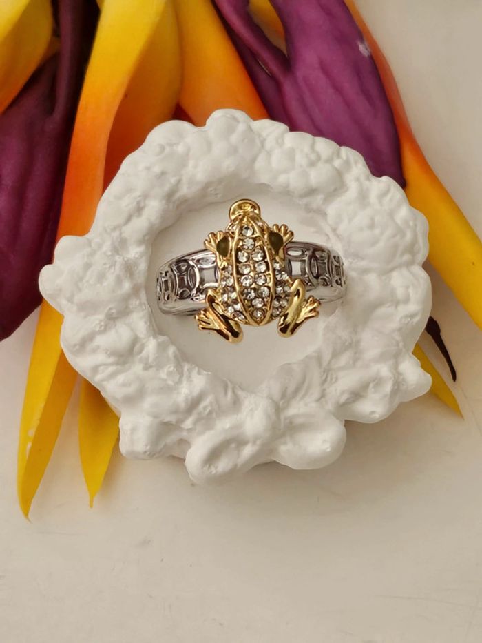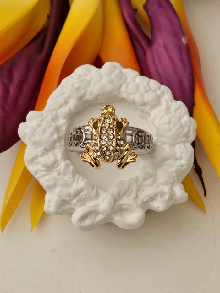 Bague grenouille avec zircoms en acier inoxydable - photo numéro 1