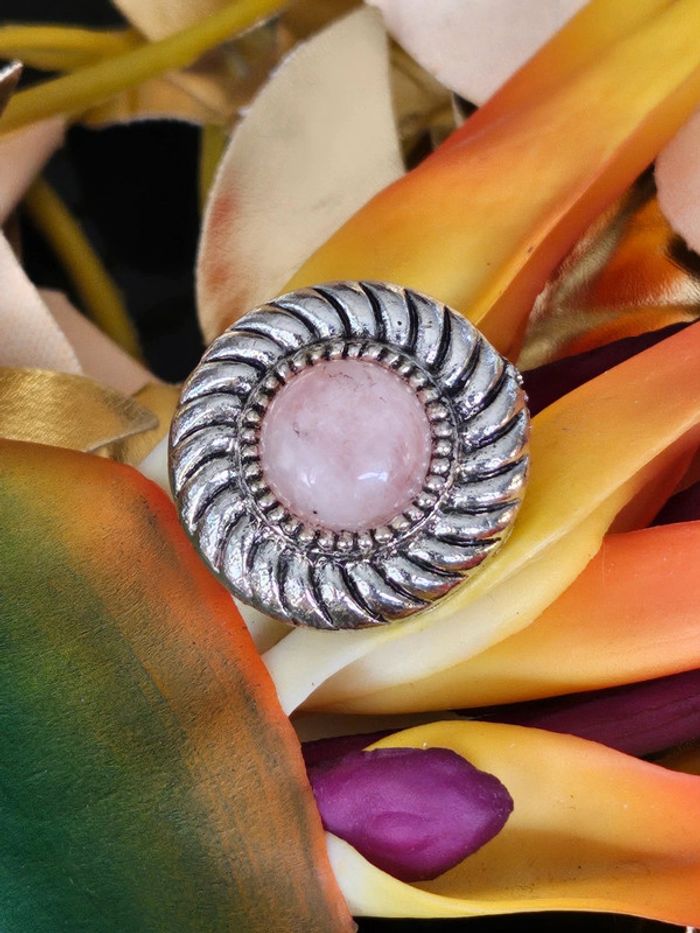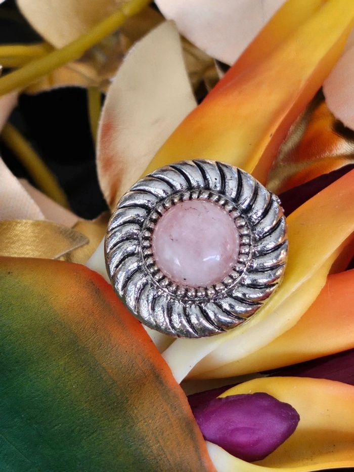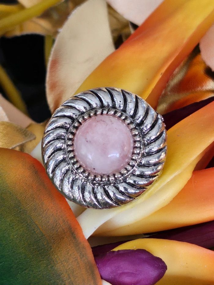 Bague ajustable avec pierre de quartz rose en acier inoxydable - photo numéro 1