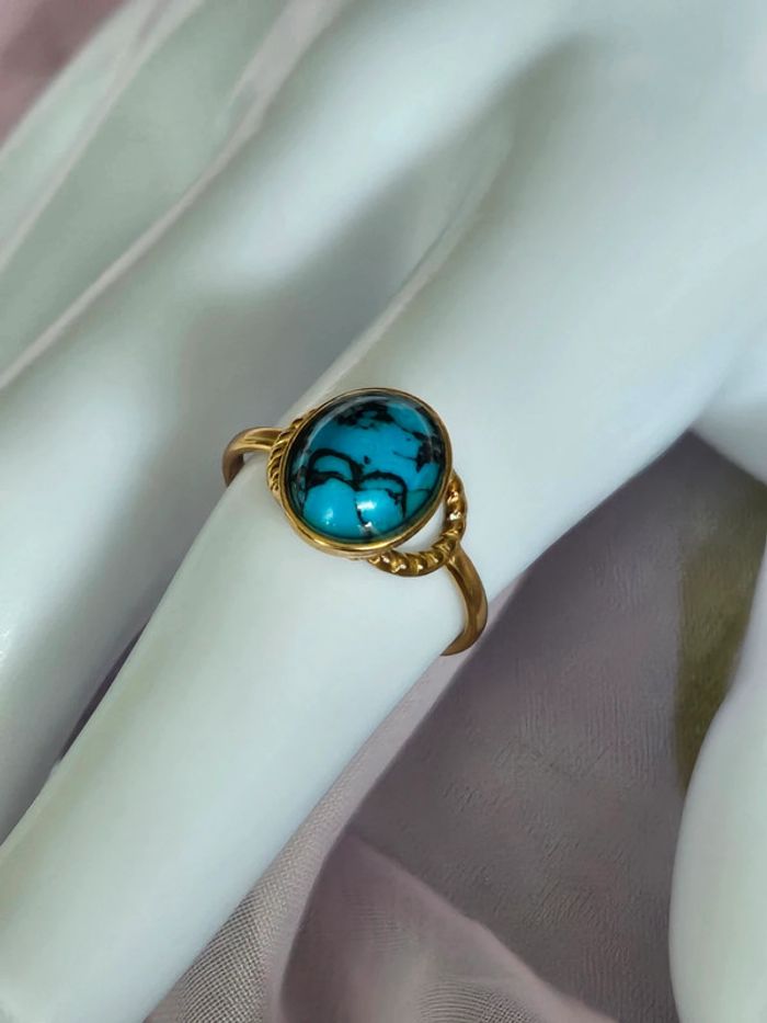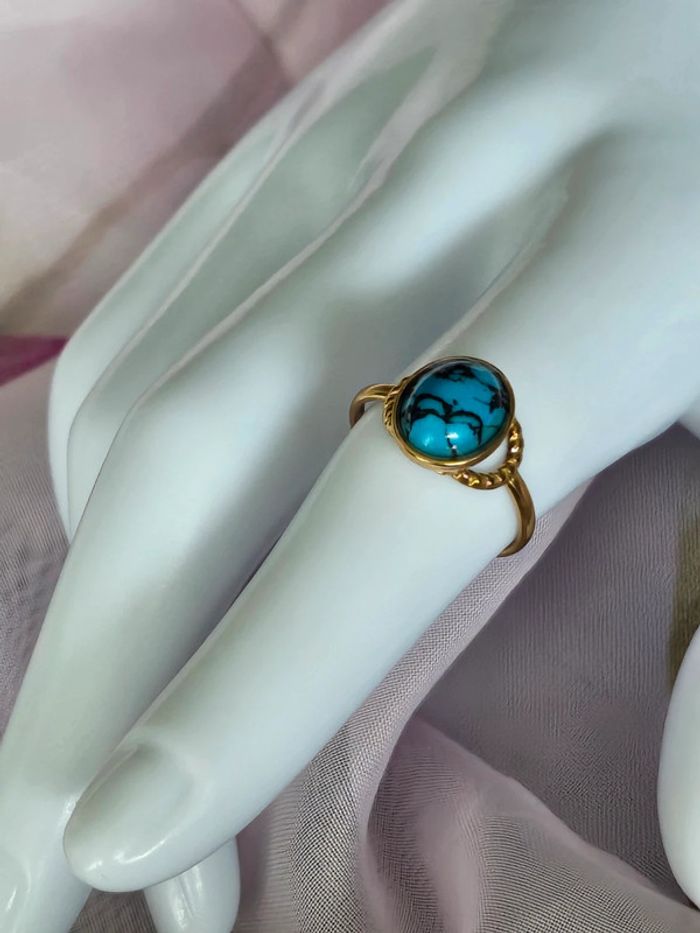 Bague avec sa pierre turquoise mélangée Neuve sans étiquette, jamais portée De marque Aihhq En acier inoxydable hypoallergenique haute qualité Ne noircit pas au fil du temps Bonne résistance au passage sous l eau Taille 52 (21/04/2025*281)