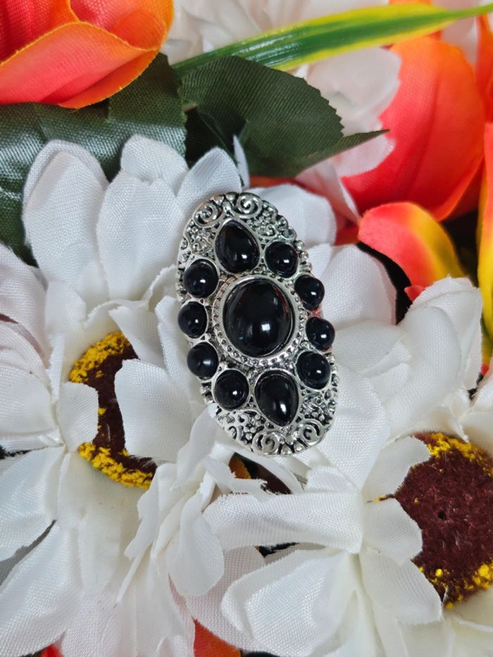 Bague texturee avec ses pierres onyx noir - photo numéro 2