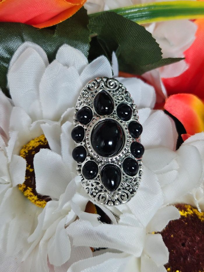 Bague texturee avec ses pierres onyx noir - photo numéro 1