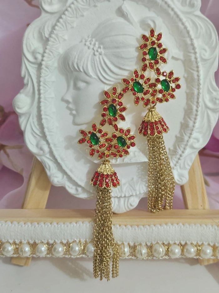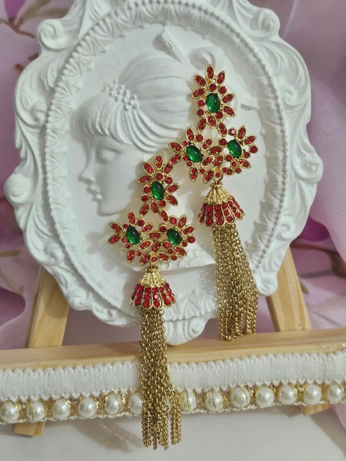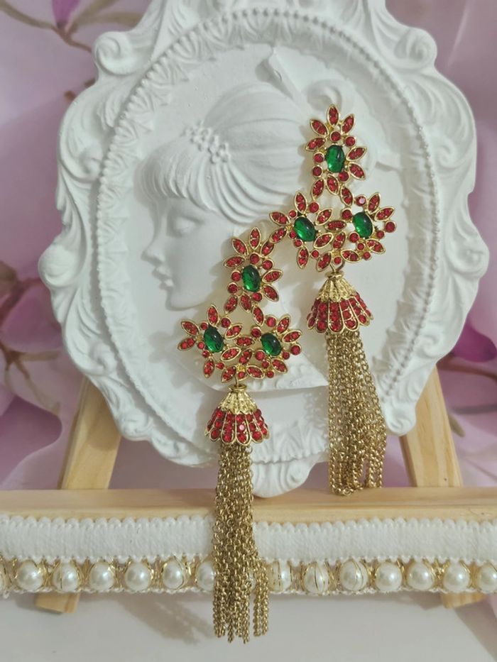 Boucles d oreilles avec chaînes , pierres topaz verte et rouge Neuves sans étiquette, jamais portées De marque Aihhq En acier inoxydable hypoallergenique haute qualité Ne noircit pas au fil du temps Bonne résistance au passage sous l eau Pour oreilles percées Longueur avec l attache : 11 cm Non lourdes Poids pour les 2 boucles: 26 grammes (23/04/2025*339)