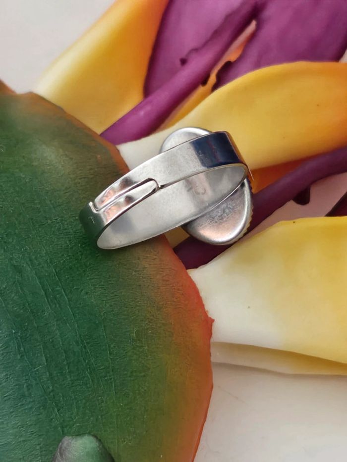 Bague ajustable avec sa pierre en acier inoxydable - photo numéro 2