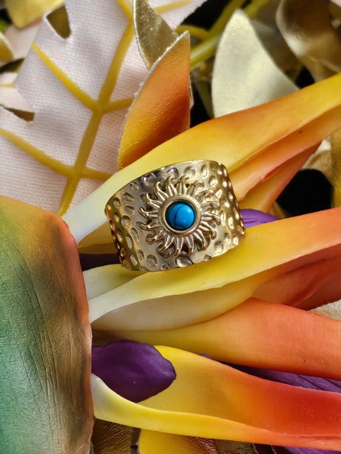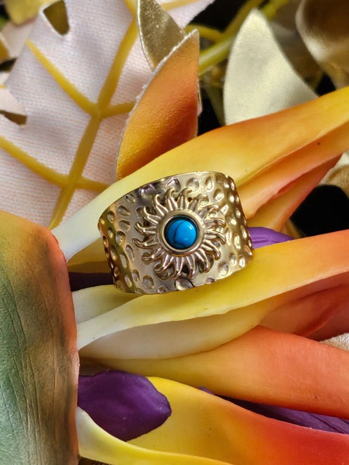 Bague en acier inoxydable avec pierre turquoise mélangée - photo numéro 4