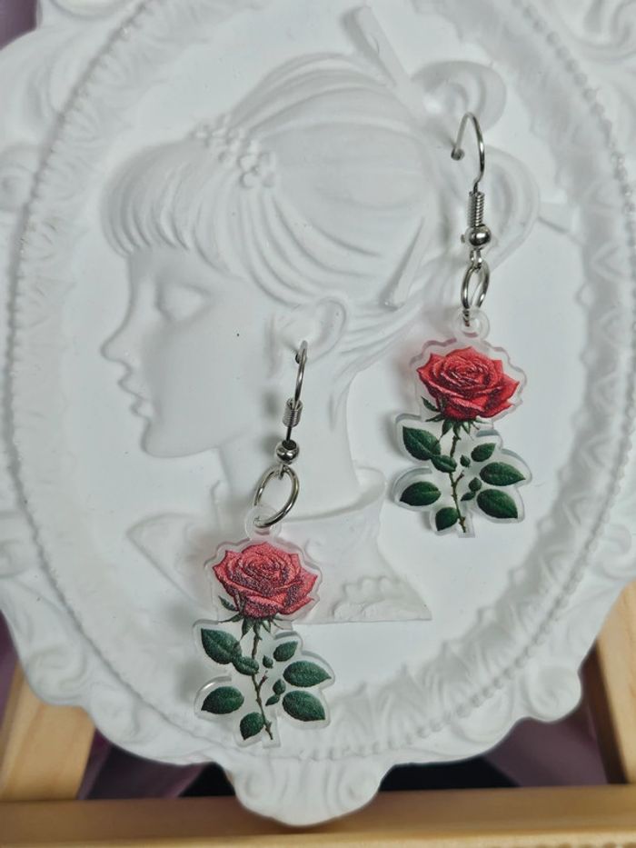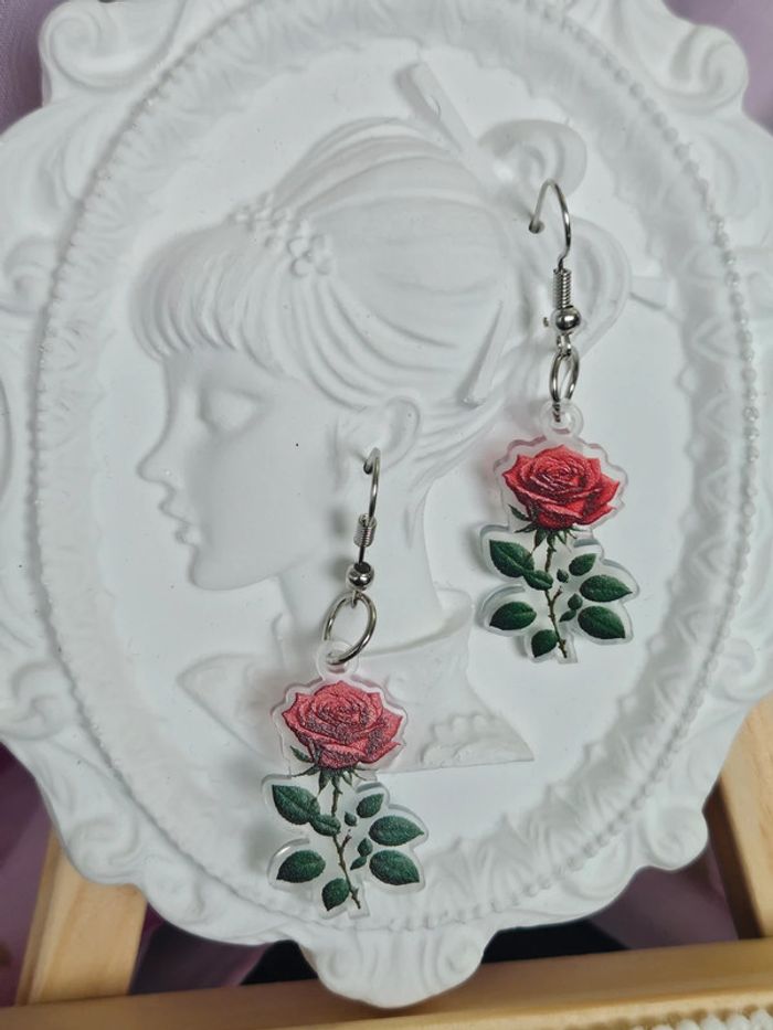 Boucles d oreilles en forme de roses Neuves sans étiquette, jamais portées De marque Aihhq En acier inoxydable hypoallergenique haute qualité ( pour les tiges) Ne noircit pas au fil du temps Bonne résistance au passage sous l eau Pour oreilles percées Longueur avec l attache : 5 cm (20/04/2025*265)