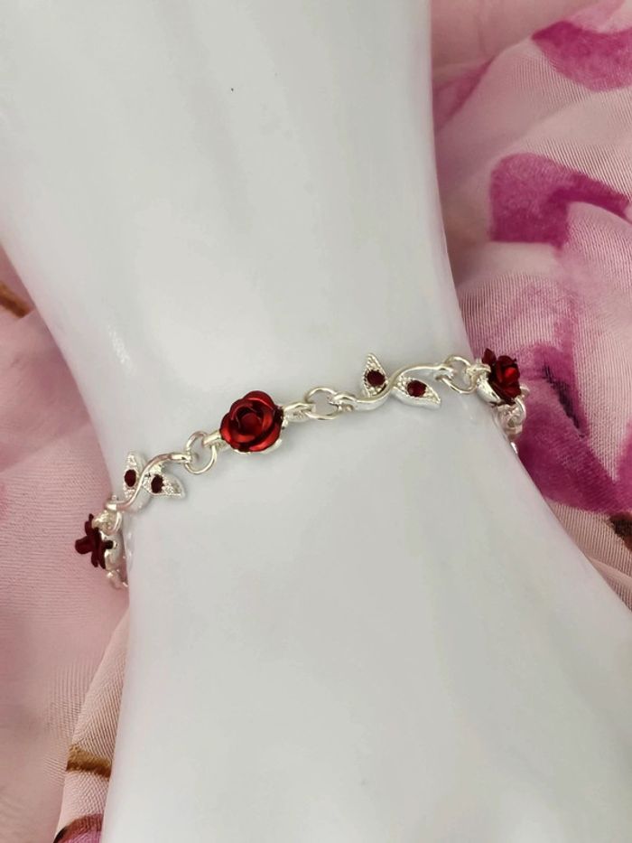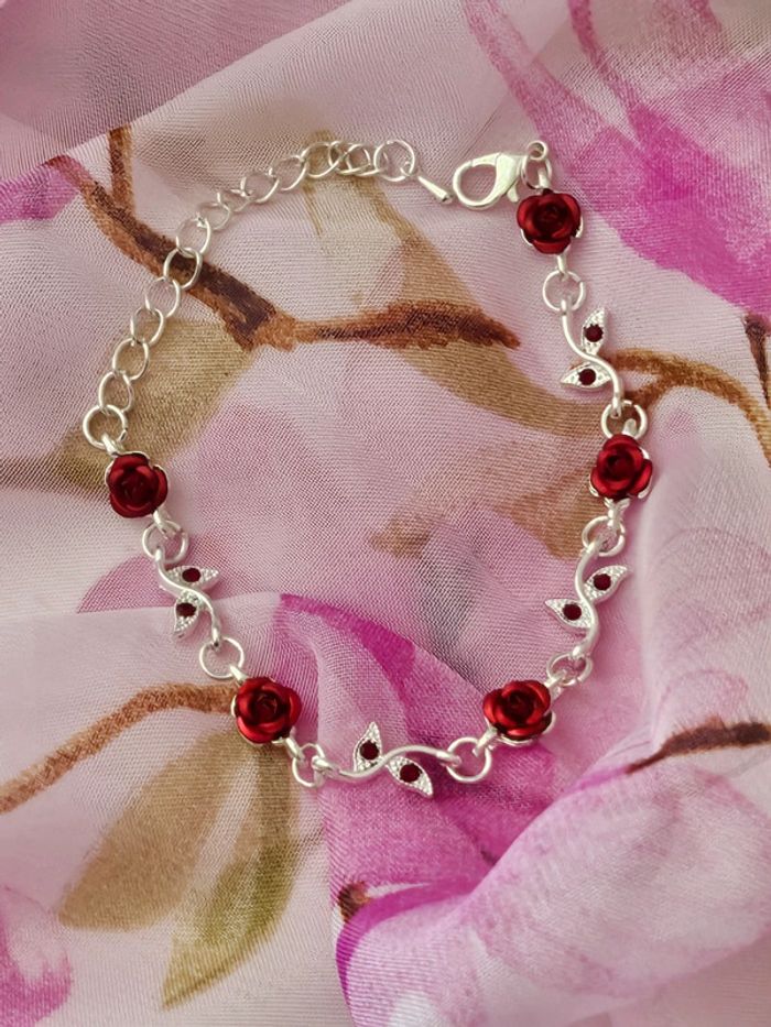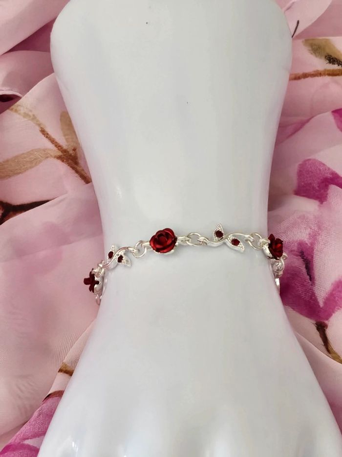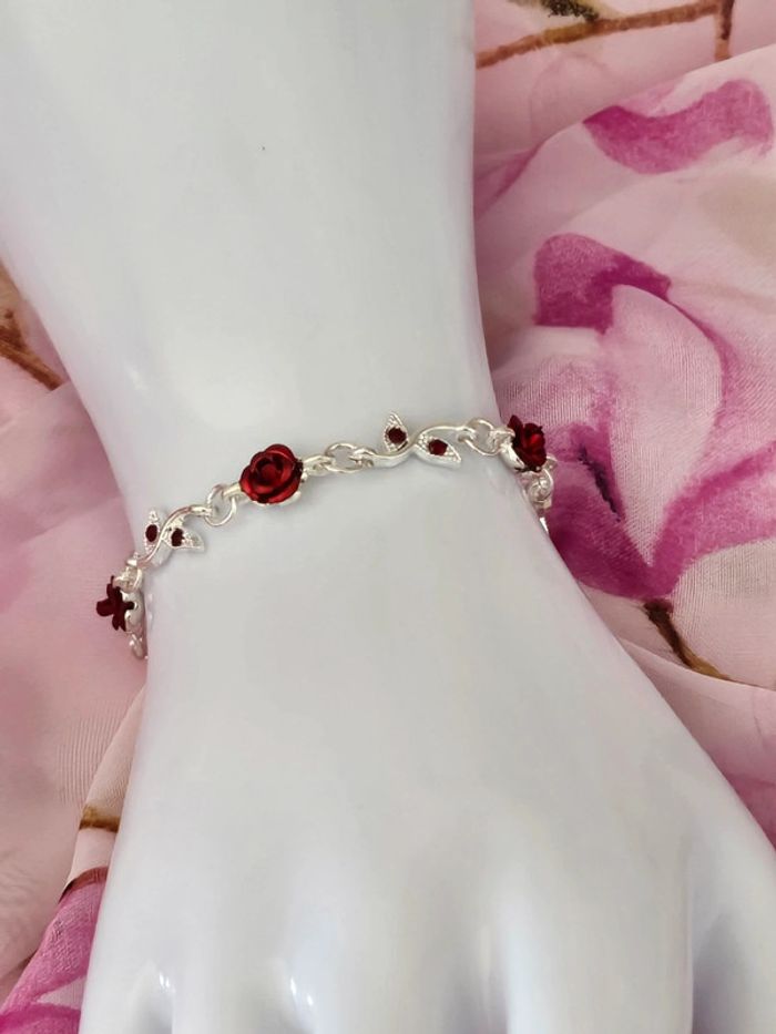 Bracelet avec ses petites roses et zirconium Neuf sans étiquette, jamais porté De marque Aihhq En acier inoxydable hypoallergenique haute qualité Ne noircit pas au fil du temps Bonne résistance au passage sous l eau Bracelet réglable Longueur détaché: 22 cm (19/04/2025*257)