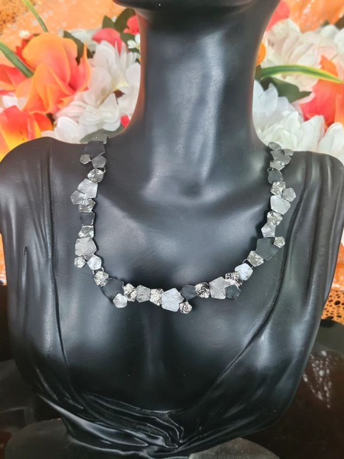 Collier mosaïque noir/argent Neuf sans étiquette, jamais porté De marque Ikita En acier inoxydable hypoallergenique haute qualité Ne noircit pas au fil du temps Bonne résistance au passage sous l eau Collier réglable (21/04/2025*298)