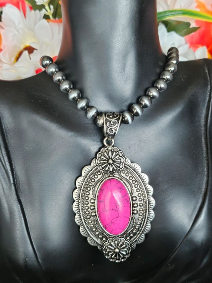 Collier texturé avec pierres hematite et pierre turquoise rose mélangées Neuf sans étiquette, jamais porté De marque Aihhq En acier inoxydable hypoallergenique haute qualité Ne noircit pas au fil du temps Bonne résistance au passage sous l eau Collier réglable (19/04/2025*252)