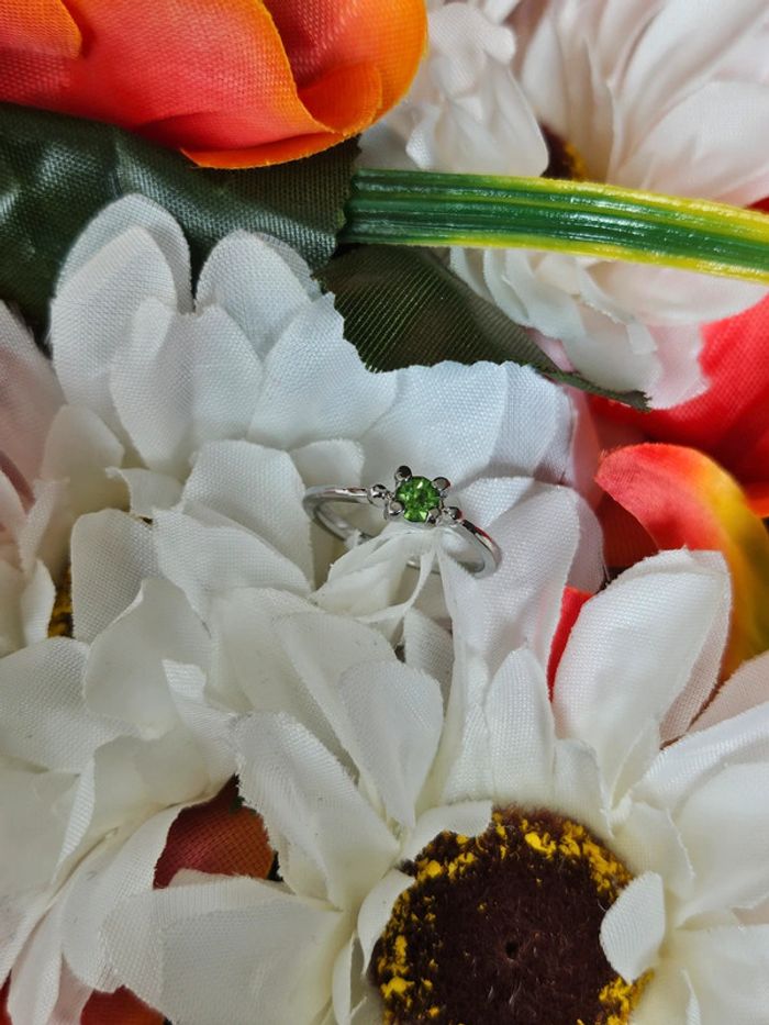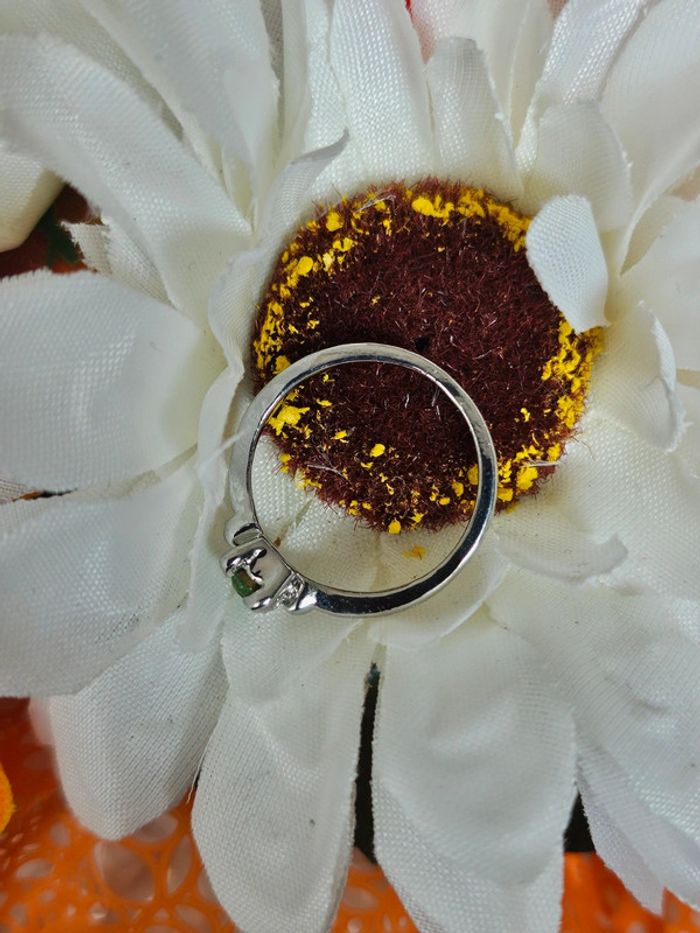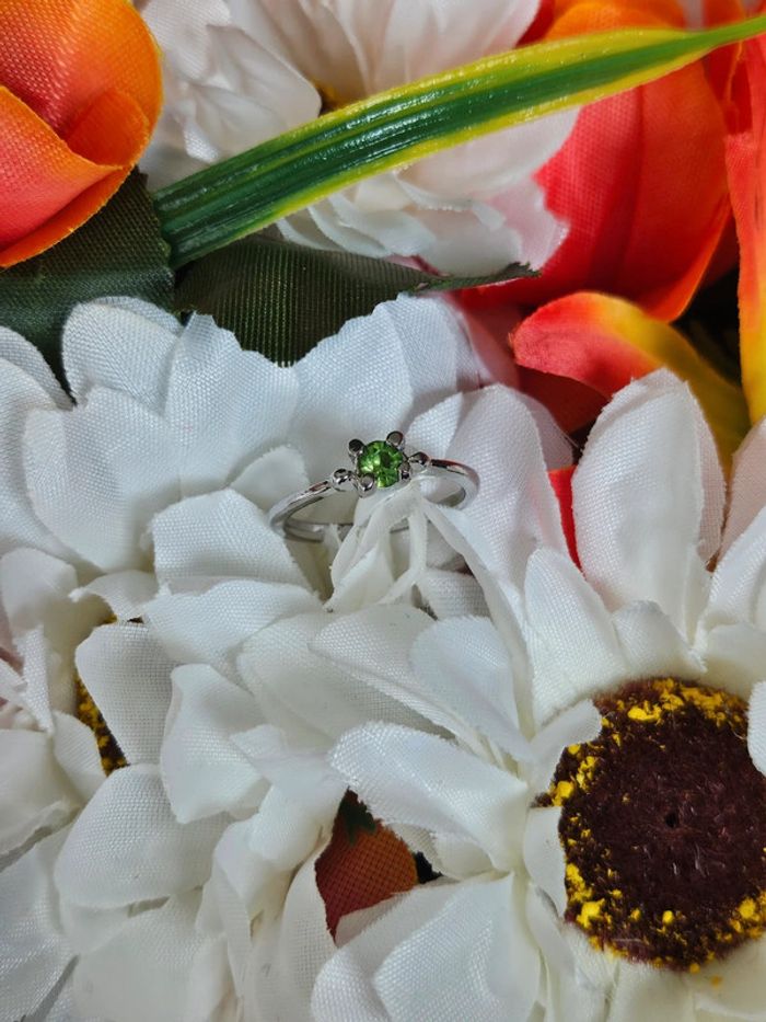 Je vous propose cette bague fine avec sa pierre peridot. Neuve sans étiquette, jamais utilisée. En acier inoxydable hypoallergenique ( garantie contre les allergies). Résistante a l eau. Taille 52 (14/04/2025*132)