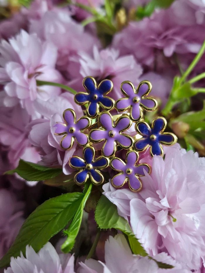 Bague ajustable avec petites fleurs teinte violette