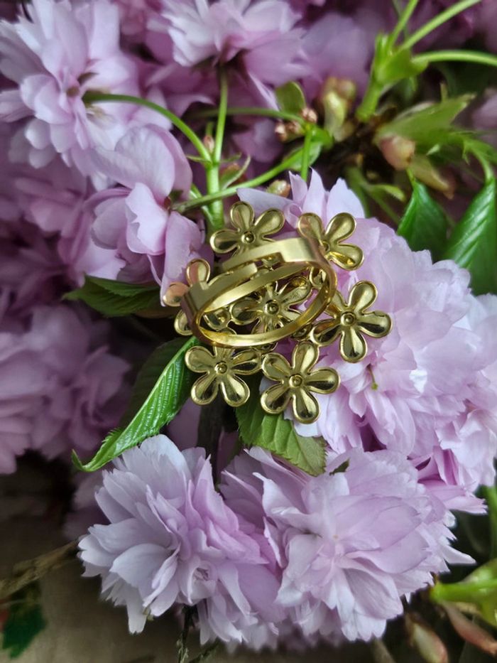 Bague ajustable avec petites fleurs teinte violette - photo numéro 1