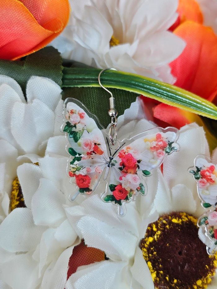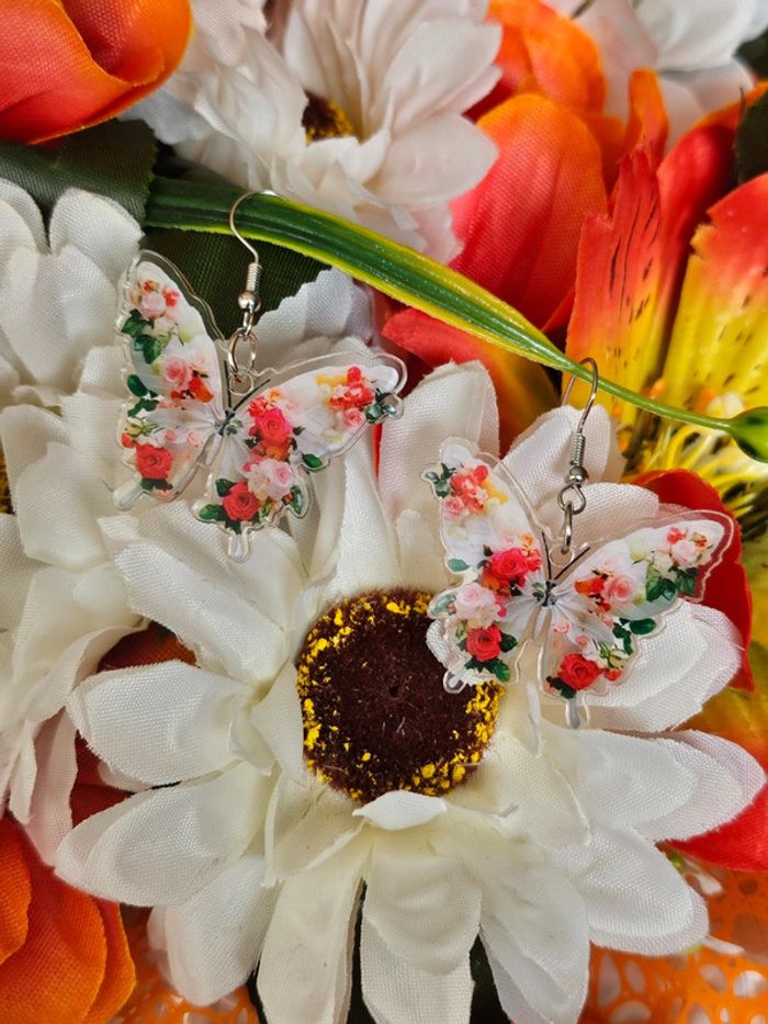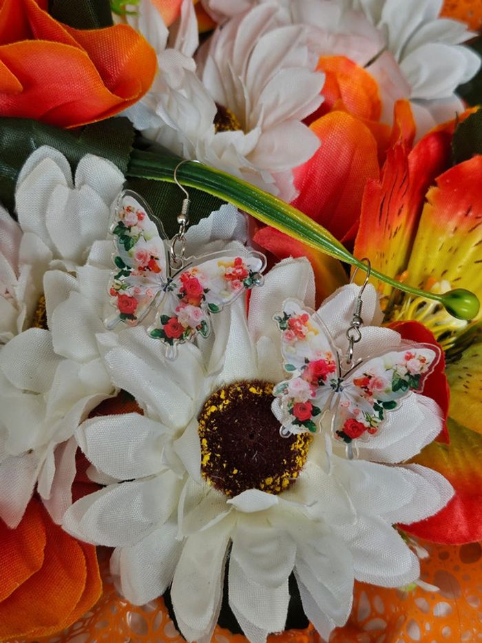 Boucles d oreilles papillons fleuris - photo numéro 1