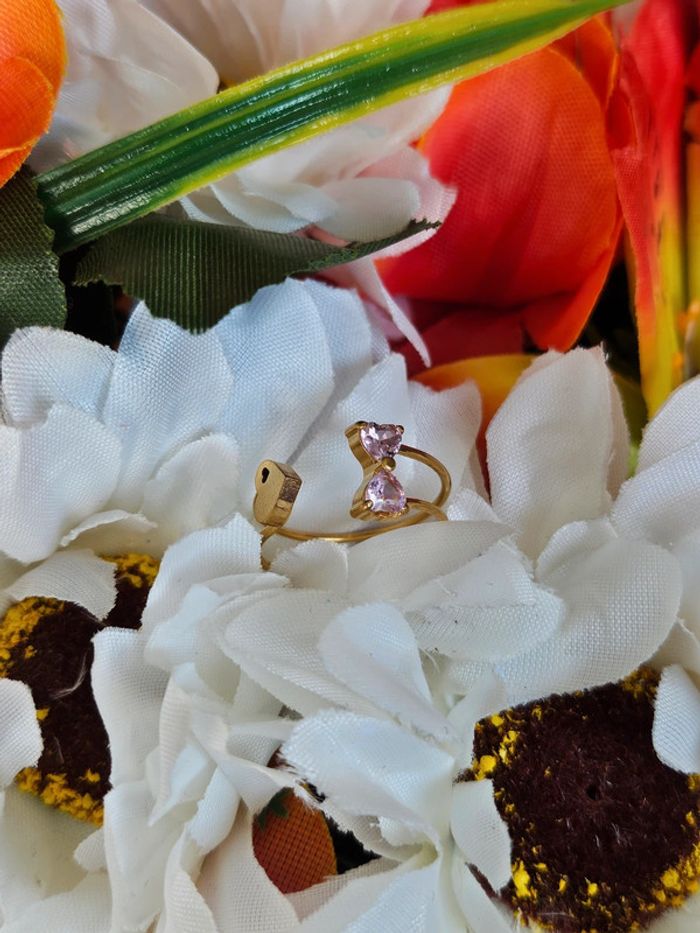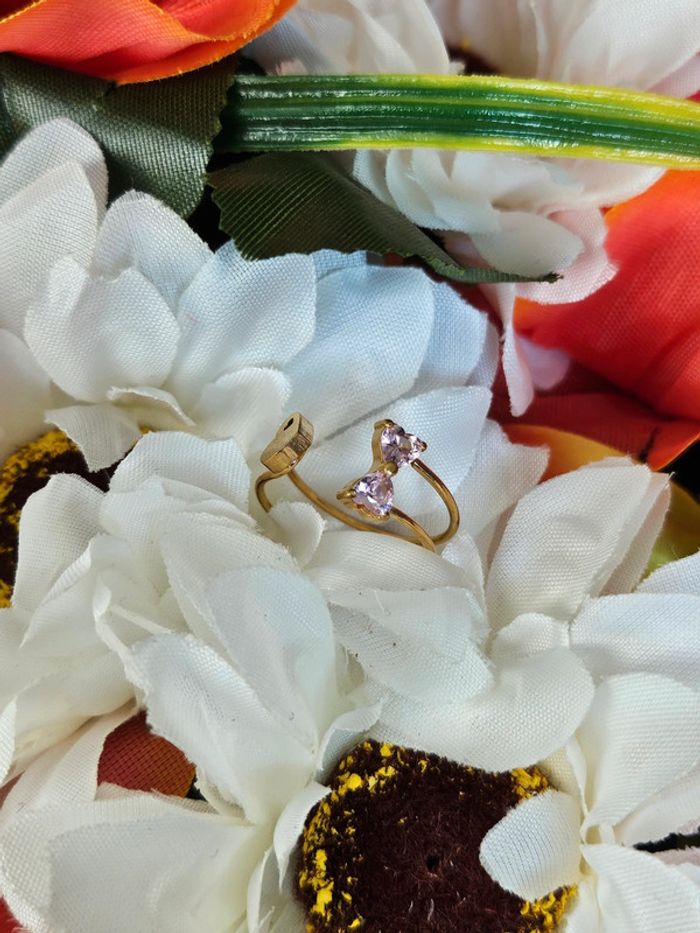 Je vous propose cette bague avec cœurs et nœud en pierre de quartz rose. Neuve sans étiquette, non utilisée. En acier inoxydable hypoallergenique ( garantie contre les allergies). Résistante au passage sous l eau. Taille 54 (14/04/2025*122)