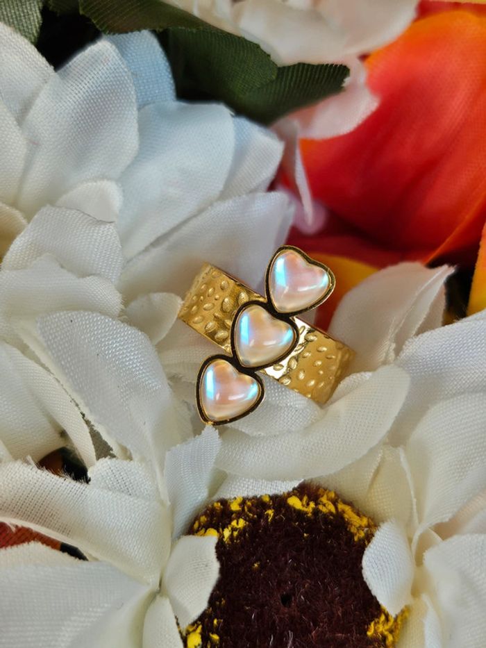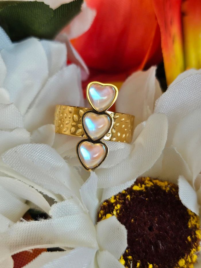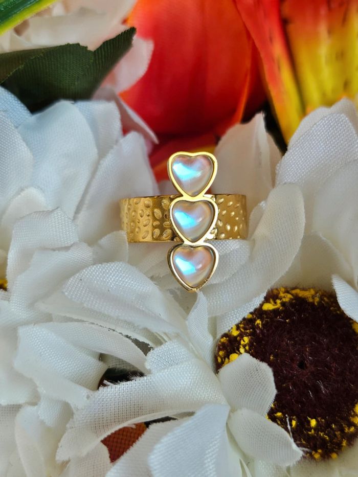 Bague avec ses 3 cœurs en pierres de lune - photo numéro 1