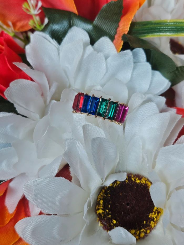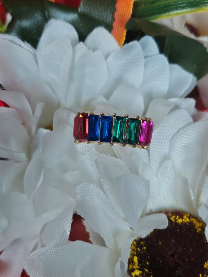 Bague avec ses pierres topaz rouge, bleu, verte, fushia - photo numéro 1