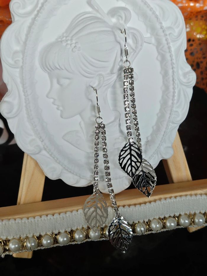 Je vous propose cette paire de boucles d'oreilles pendantes feuilles et zirconium. Neuves sans étiquette, non utilisées. En acier inoxydable hypoallergenique ( évite les allergies). Résistantes a l eau. Pour les oreilles percées. Longueur avec l attache : 9 cm (13/04/2025*096)